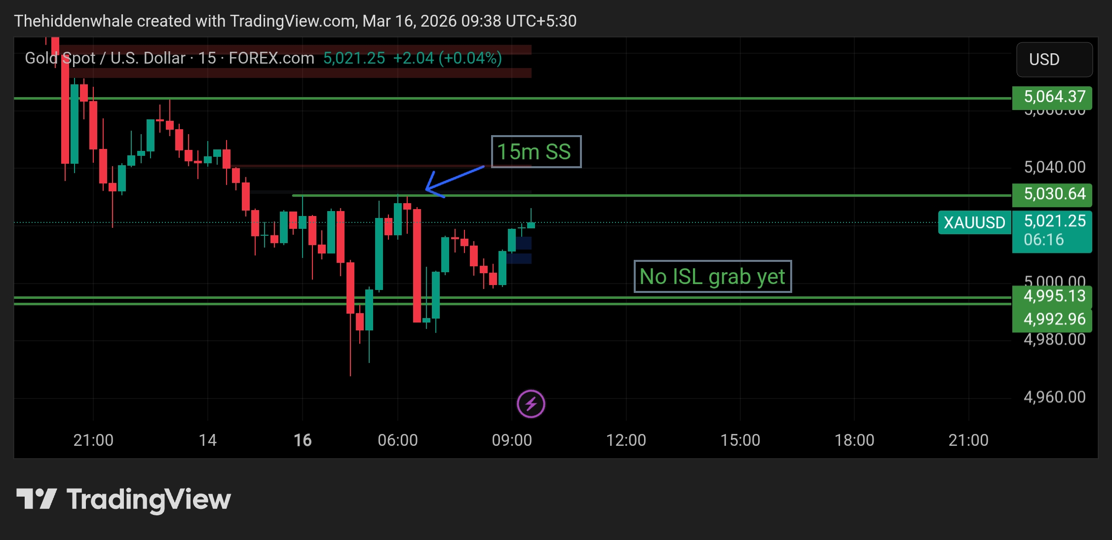 As I said in earlier post , gold took liquidity at 4995. Bullish scenario in play. 15M shows structure shift. But we wait for internal liquidity first. 1H structure shift needs to happen first before any move. If trend continues, bullish bias rema