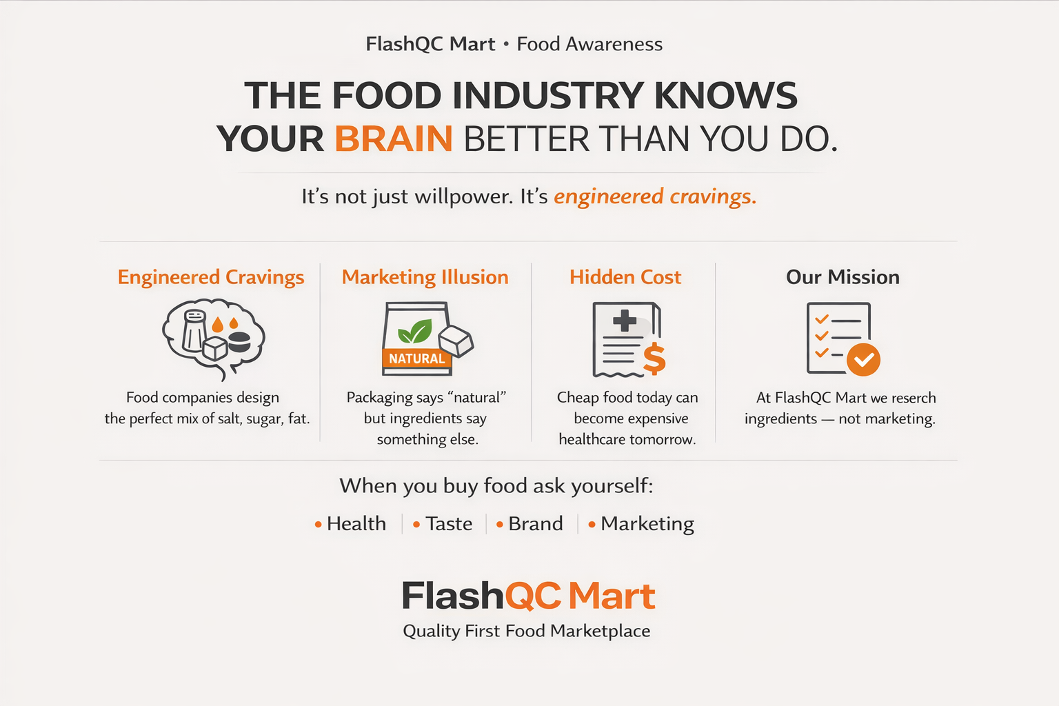 While researching organic and quality food brands for FlashQC Mart, I came across a video that completely changed how I look at food products. The food industry doesn’t just compete on taste anymore — it studies human psychology. Companies engineer t