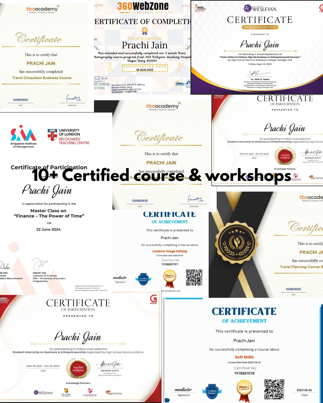 I'm feeling really proud to share that I have completed more then 10 certifications & workshops successfully & looking forward to going with more of them ✨ #professional #entrepreneur #skill #banglorediaries❤️ #jainte #certified #certificate #busin