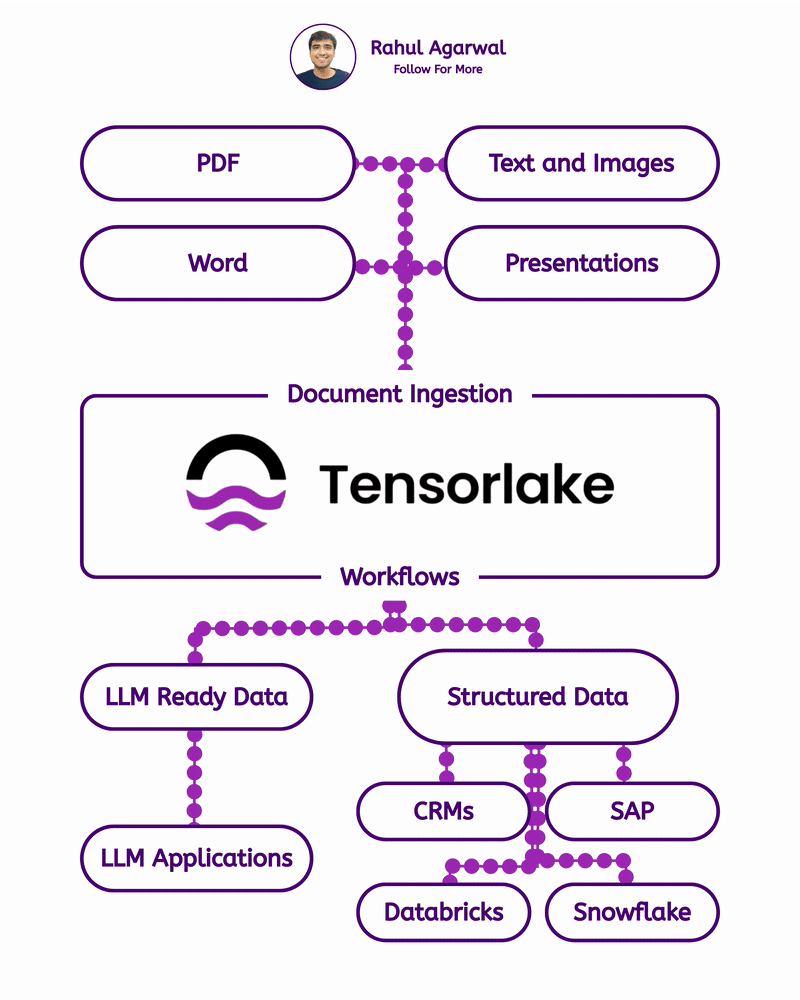 Get RAG-ready data from any unstructured document. This is crazy for AI companies. I've explained below. ๐ฆ๐๐ฒ๐ฝ 1 โ ๐จ๐ป๐๐๐ฟ๐๐ฐ๐๐๐ฟ๐ฒ๐ฑ ๐๐ผ๐ฐ๐๐บ๐ฒ๐ป๐๐ (๐ง๐ต๐ฒ ๐ฆ๐ผ๐๐ฟ๐ฐ๐ฒ) โข Real-world PDFs and documents are messy. Tables, images, signa