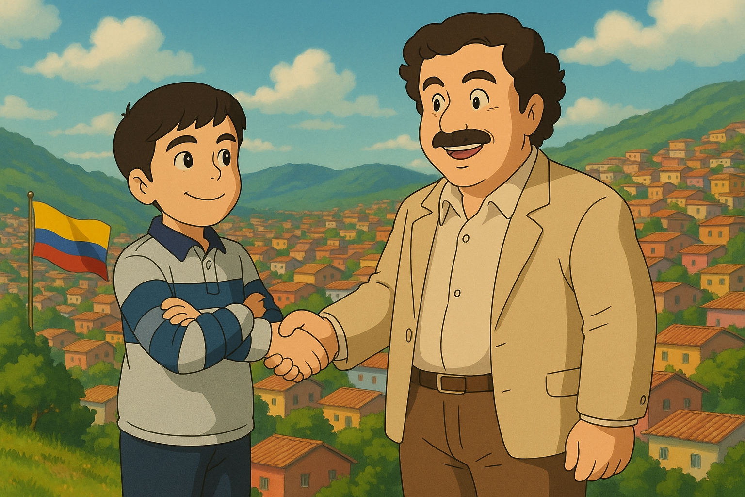 THIS IS FABULOUS GUYS I was not able to sleep during the midnight. so I started chating with chat gpt. and all of a sudden. This thing came to my mind that can I make a gibli art of me and pablo escobar shaking hands in the medellin, colombia. And