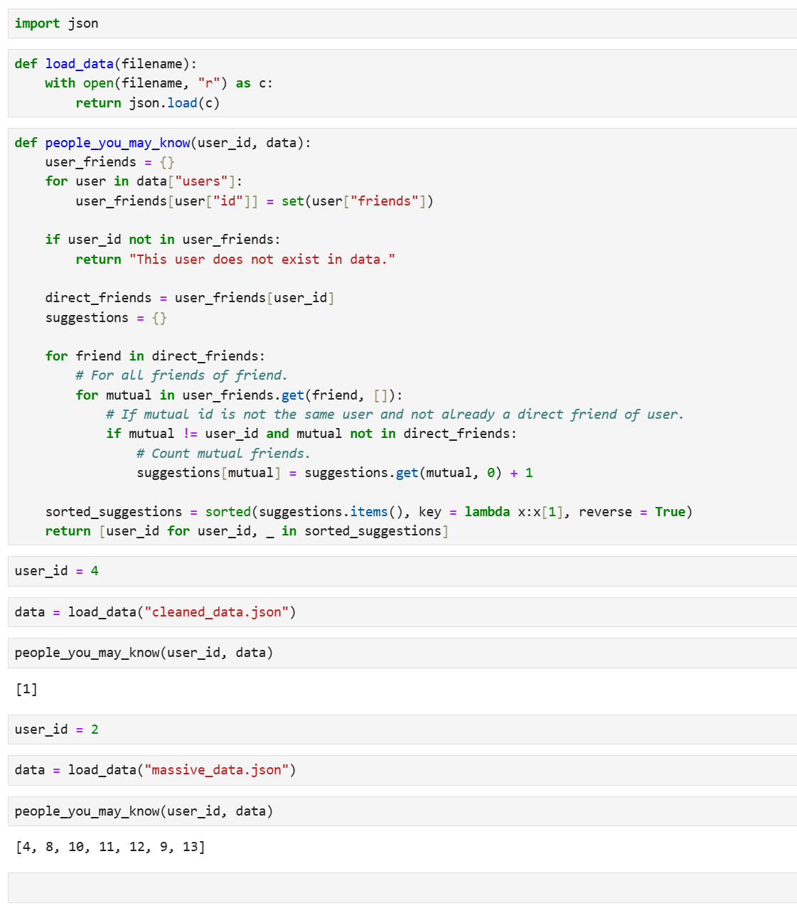 Day 3 of learning Data Science as a beginner. Topic: "people you may know" Since I have already cleaned and processed the data its time for me to go one step further and tried to understand the connection between data and create a suggestions list