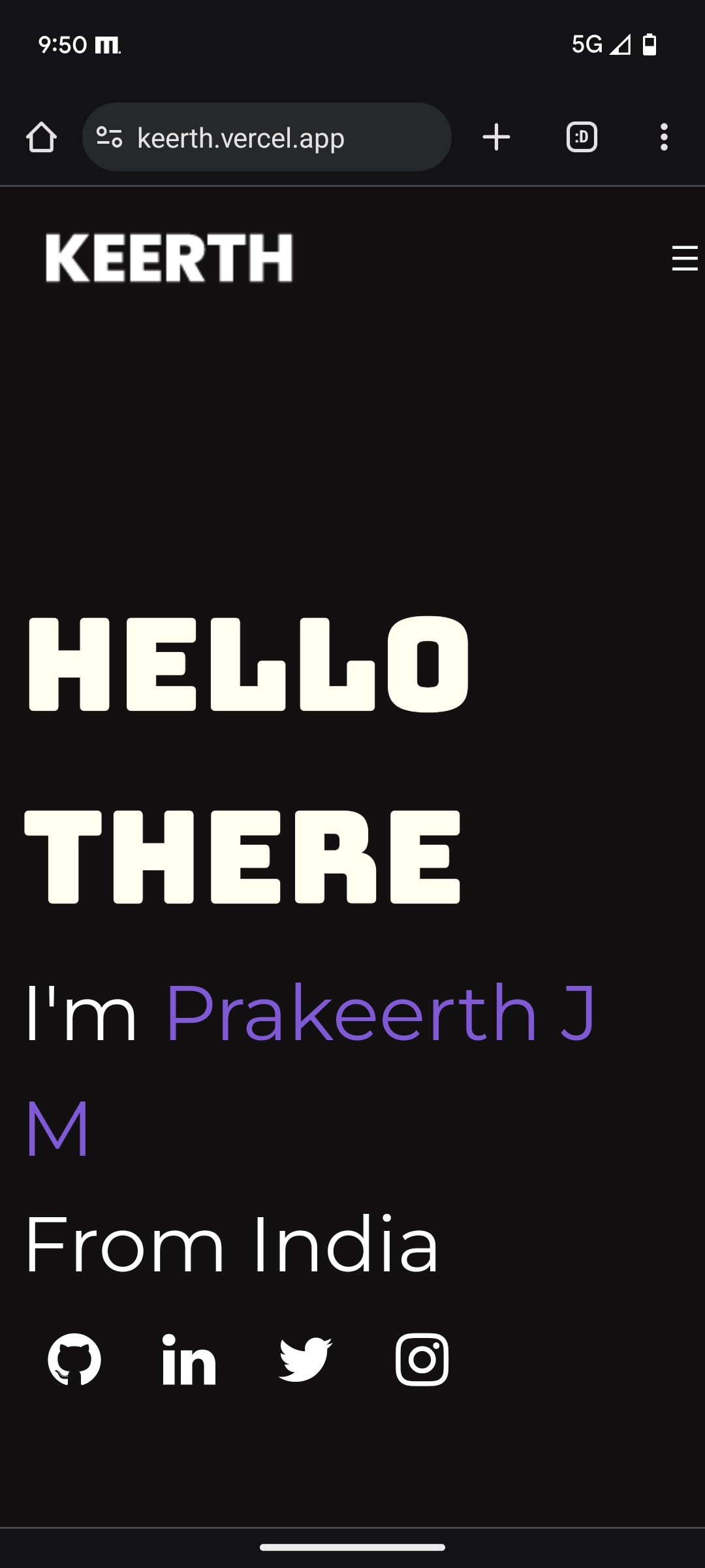 My website is finally up and running. Well there are a few sections that doesn't work on mobile, but desktop surely does. Check it out at : keerth.vercel.app