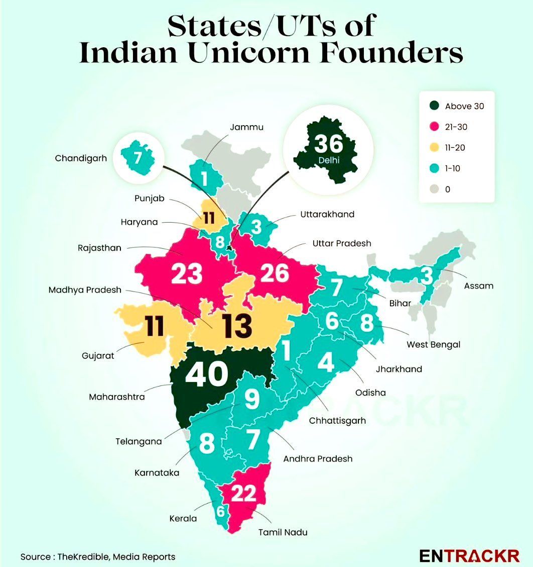 ๐ Indiaโs Unicorn Founders: State-wise Breakdown! ๐ฆ Which states are producing the most startup unicorn founders? Hereโs the leaderboard! ๐ ๐ฅ Maharashtra - 40 (Mumbai, Pune leading the charge) ๐ฅ Delhi - 36 (North Indiaโs startup hub) ๐ฅ Uttar P