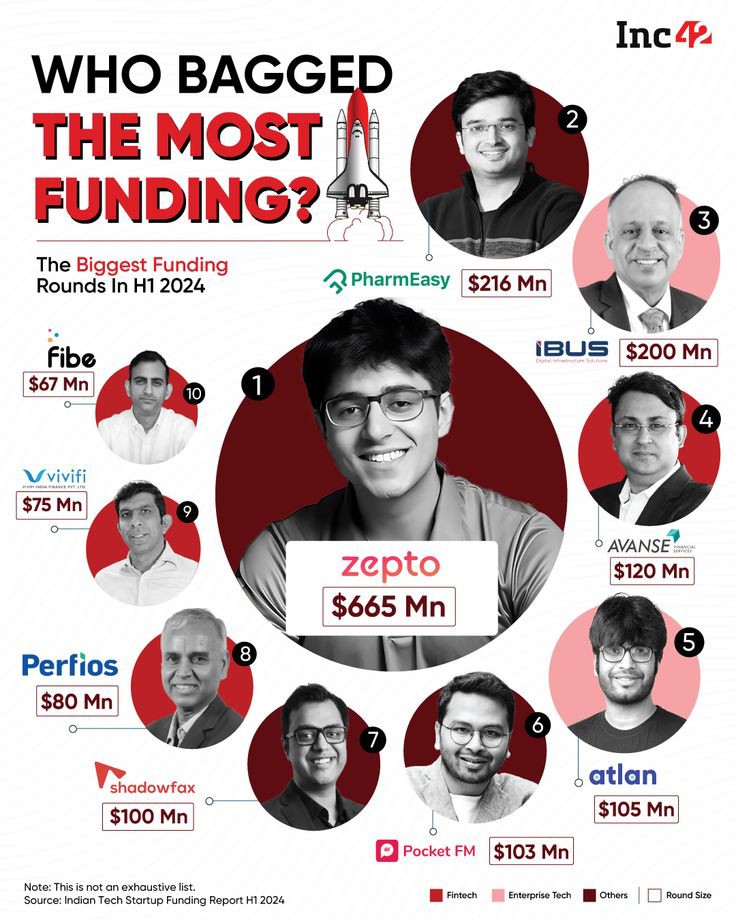 ๐ Indiaโs Biggest Startup Funding Rounds in 2024! ๐ฐ๐ฅ ๐ฅ Zepto โ $665M ๐๏ธ๐คฏ ๐ฅ PharmEasy โ $216M ๐ ๐ฅ iBUS โ $200M ๐ก 4๏ธโฃ Avanse โ $120M ๐ 5๏ธโฃ Atlan โ $105M ๐ 6๏ธโฃ Pocket FM โ $103M ๐๏ธ 7๏ธโฃ Shadowfax โ $100M ๐ 8๏ธโฃ Perfios โ $80M ๐ณ 9๏ธโฃ Vivifi