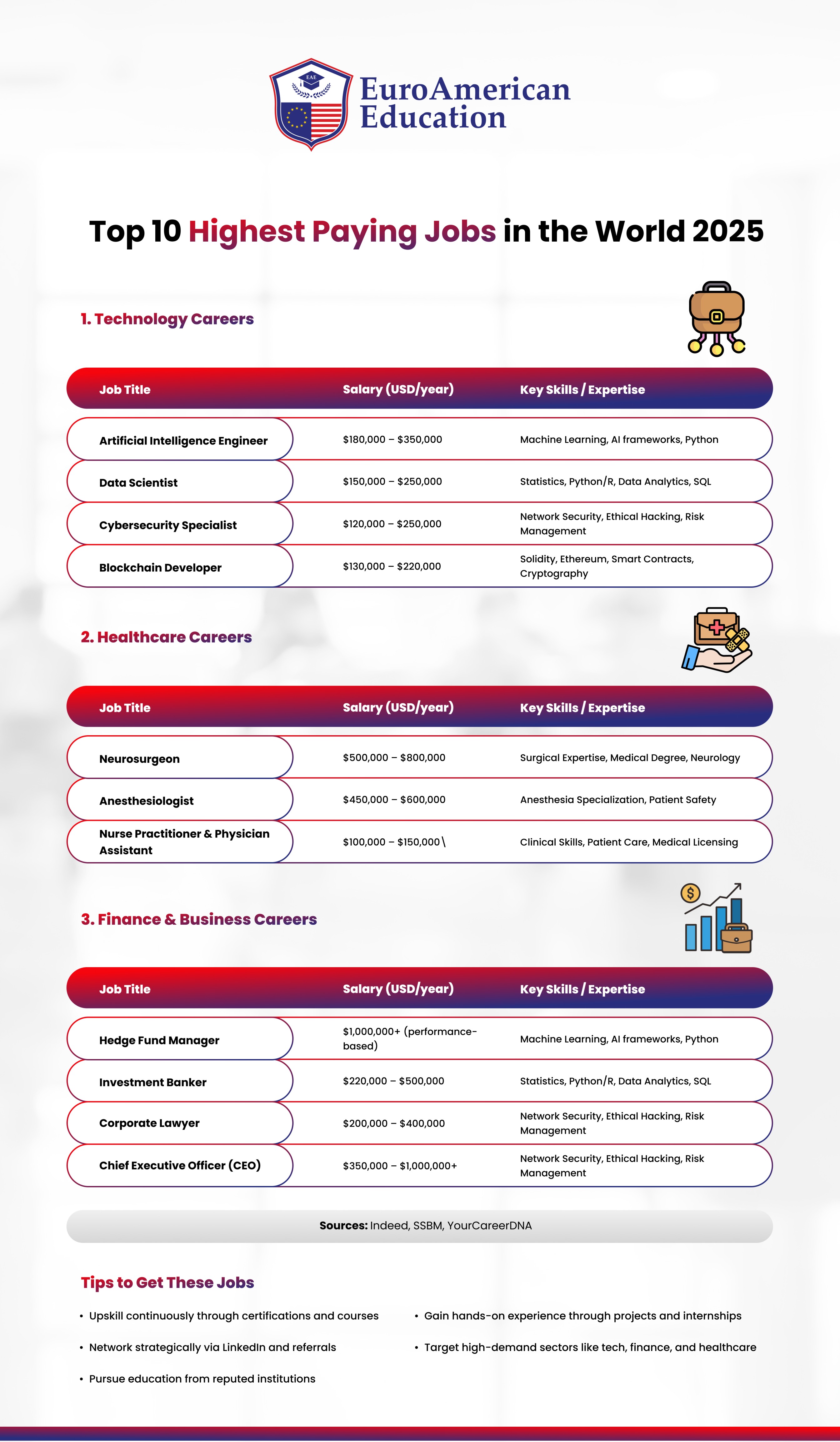 Discover the Top 10 Highest Paying Jobs in the World and explore global career opportunities that offer exceptional salaries, professional prestige, and long-term growth. These high-demand roles span industries such as technology, healthcare, finance
