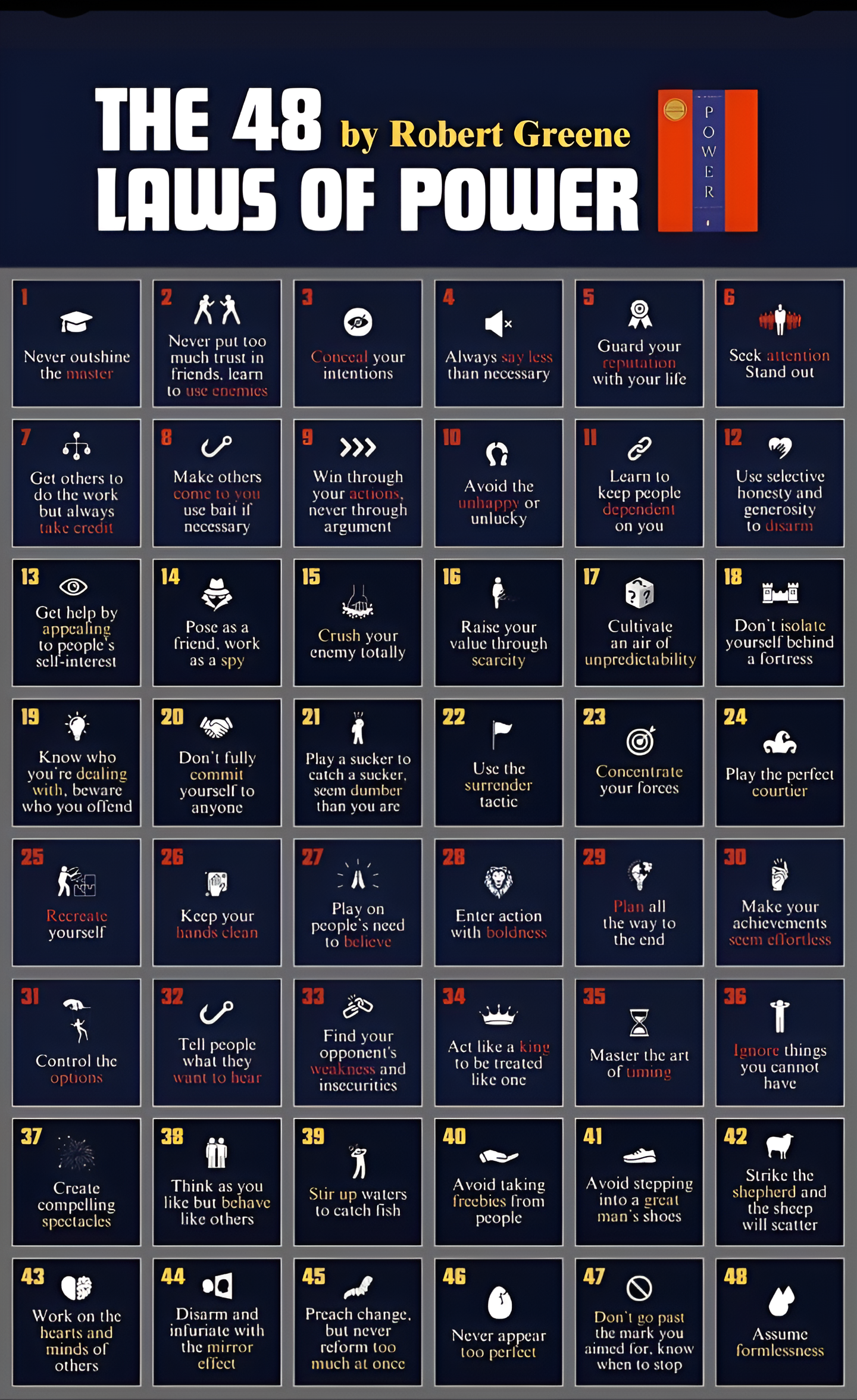 🔖 Some say The 48 Laws of Power is manipulative, others say it’s the key to success. Here are its 48 laws in short:
