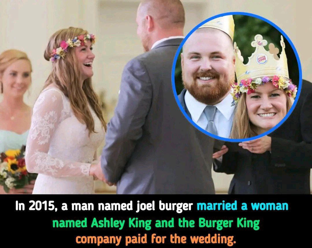 😂 In 2015, a man named joel burger 🍔 married a woman named Ashley King 👑 and the Burger King company paid 💰 for the wedding