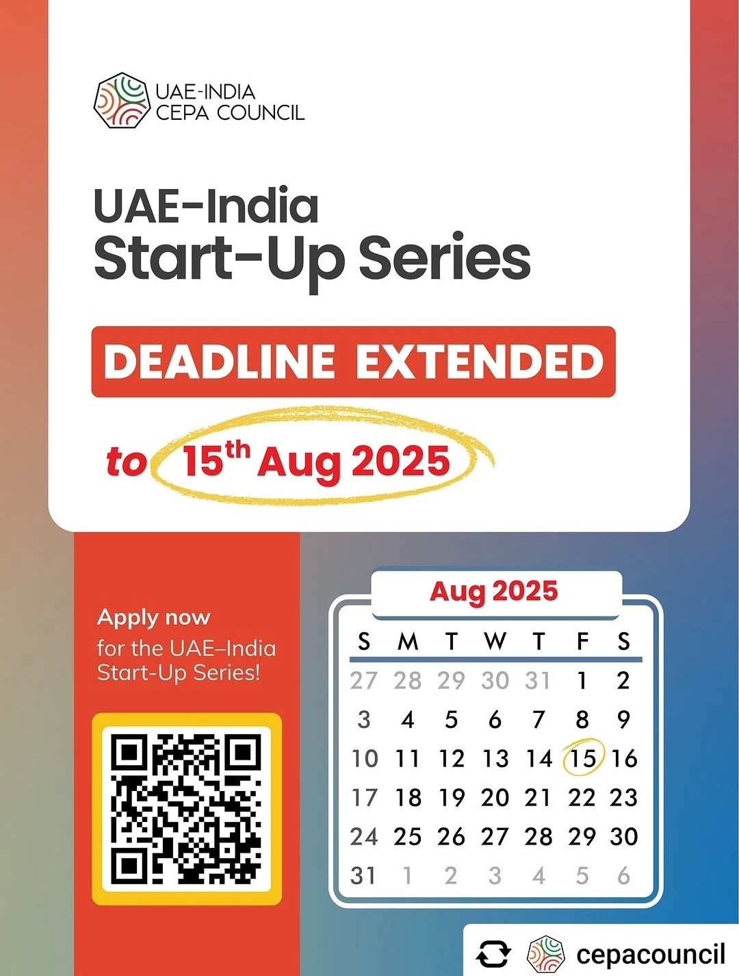 ๐๐จ๐๐-๐๐ป๐ฑ๐ถ๐ฎ ๐๐๐ฃ๐ ๐๐ผ๐๐ป๐ฐ๐ถ๐น You asked, we listened. ๐ฃ The deadline for the UAEโIndia Start-Up Series has been extended to 15 August 2025! Weโre inviting Indian start-ups to step into the UAEโs innovation ecosystem โ with fully spons