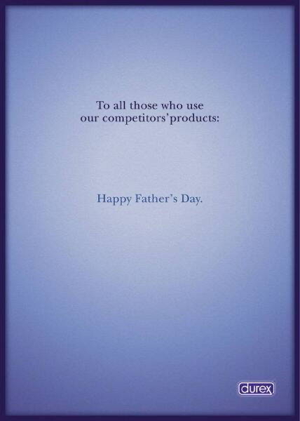 Durex Candoms vs The Rest Marketing campaign Jumping into Medial's Trending Topic This Clever campaign titled 'Happy Father's day' was published in June 2010 by Durex(a Condom Brand). Durex cleverly warned everybody who bought the competition’s c
