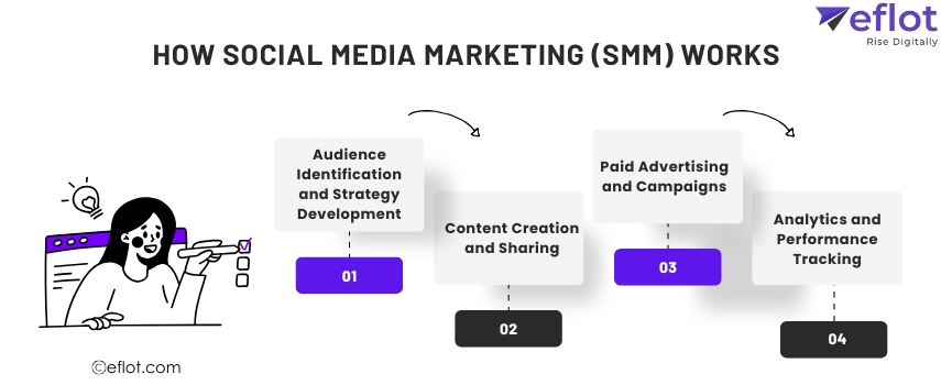 How Social Media Marketing Works | Eflot Social media marketing leverages platforms like Facebook, Instagram, and LinkedIn to connect with audiences, build brand awareness, and drive engagement. It involves creating tailored content, running ads, a