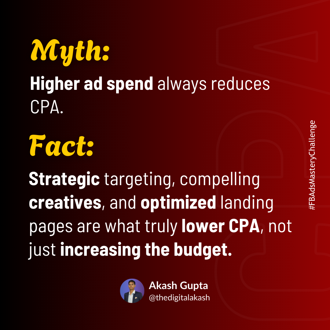๐จ Myth Busted! ๐จ ๐ญ Myth: Higher ad spend = Lower CPA (Cost Per Acquisition). โ Fact: The secret to reducing CPA lies in strategic targeting, compelling creatives, and optimized landing pagesโNOT just throwing more money at your ads! ๐ก ๐ Stop w