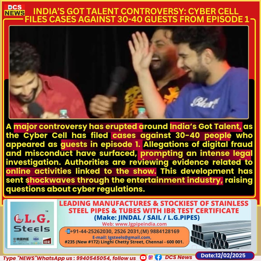 Where are we heading??? India’s Got Talent Controversy: Cyber Cell Files Cases Against 30-40 Guests From Episode 1 https://dcsnews.in/2025/02/india-s-got-talent-controversy-cyber-cell-investigates-30-40-guests-from-episode-1/