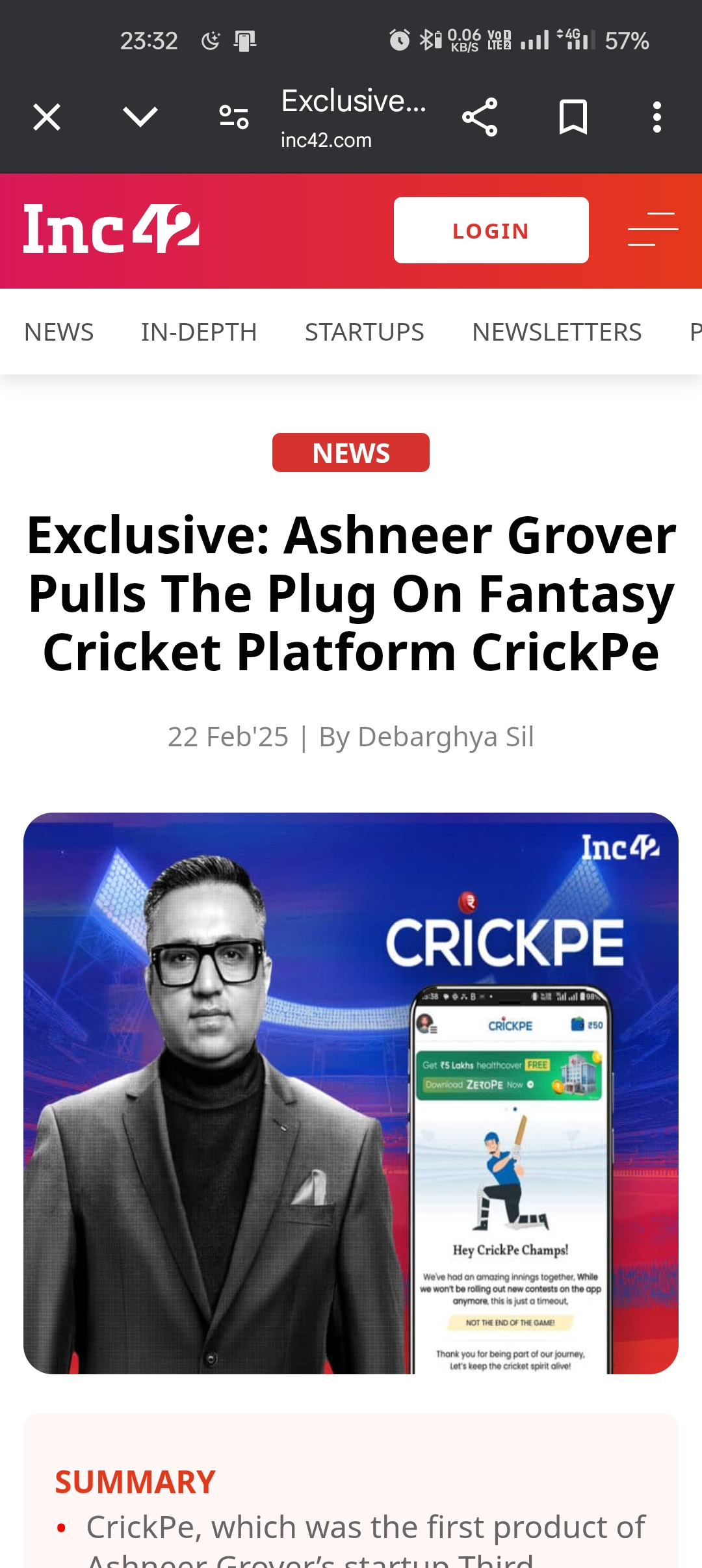 bas nikal gayi hawa? CrickPe, which was the first product of Ashneer Grover’s startup Third Unicorn, has halted operations within a couple of years of its launch Grover cited the 28% GST regime for real-money gaming and problems with the business model for the decision to halt CrickPe Third Unicorn has turned its focus on ZeroPe, its lending tech platform for providing loans for medical treatments.