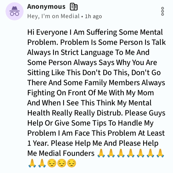Hi Everyone I Am Suffering Some Mental Problem. Problem Is Some Person Is Talk Always In Strict Language To Me And Some Person Always Says Why You Are Sitting Like This Don't Do This, Don't Go There And Some Family Members Always Fighting On Front Of