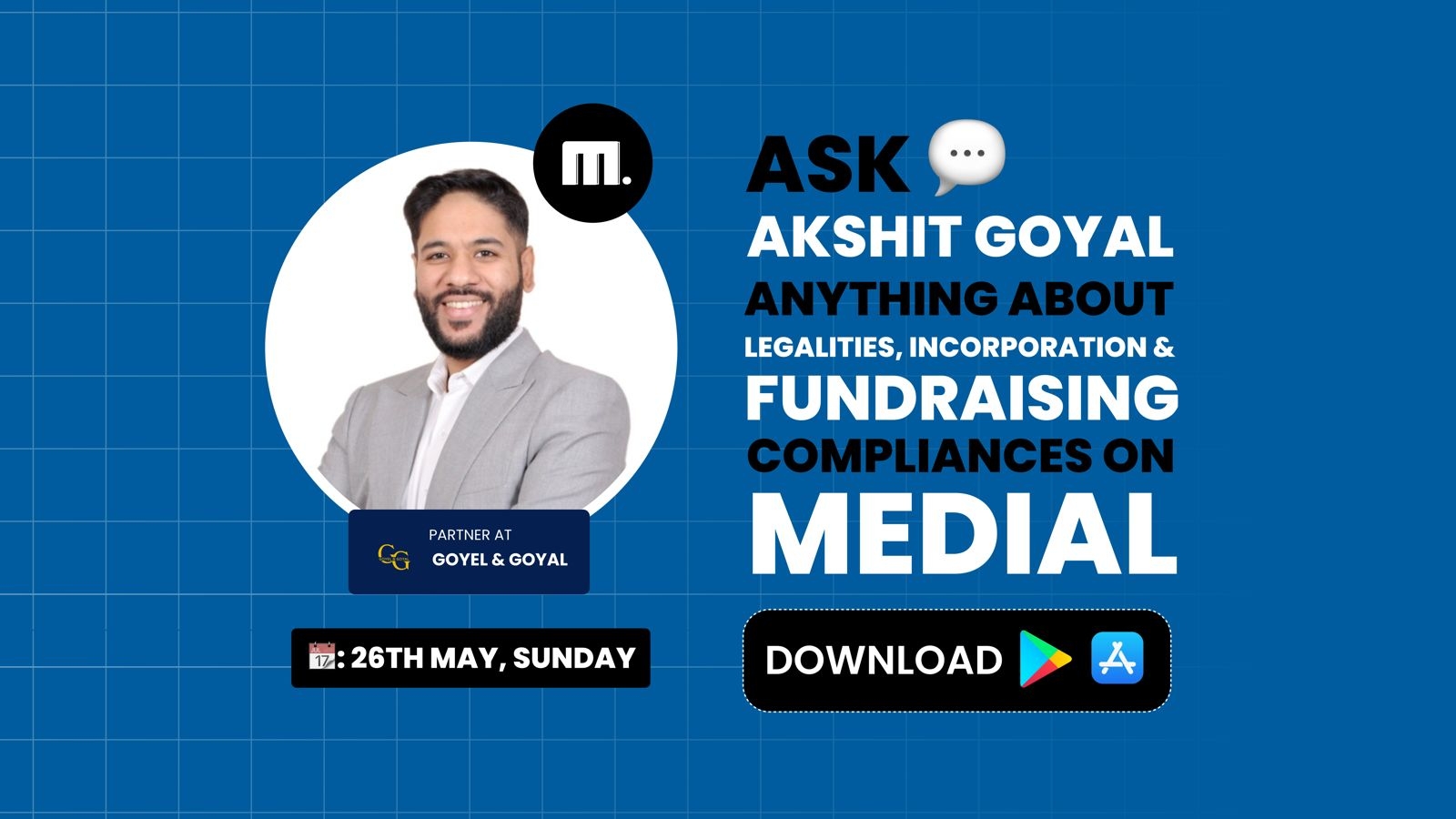 Hi everyone! I’m Akshit, Partner and Corporate Practice Head at Goyel and Goyal. I'm here on Medial to answer all your questions regarding startup incorporation, legalities, fundraising compliances and any and all things legal/CS. Please put down