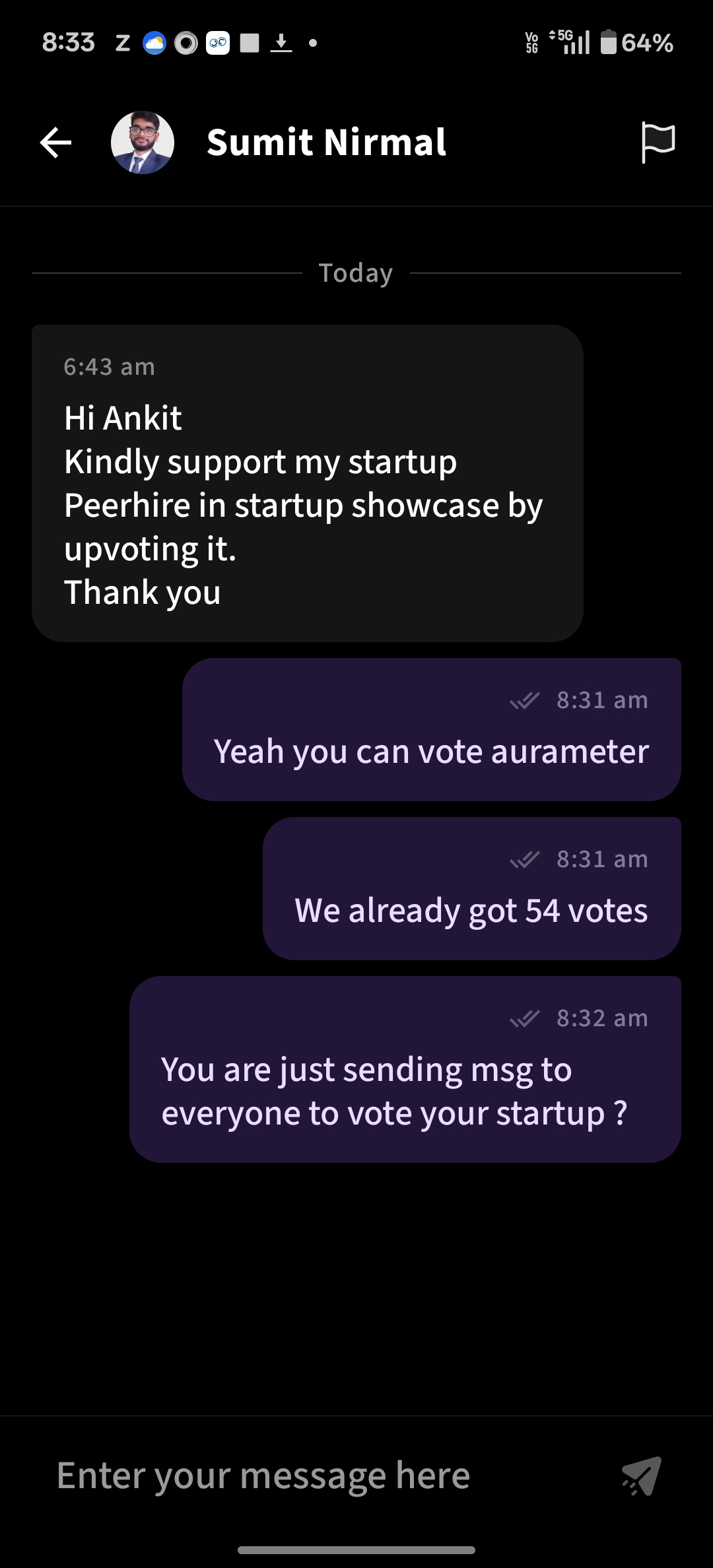 I am amazed , start-up getting 150+ votes just msging every one for voting their startup i tried with one but i thought ye sahi nahi he