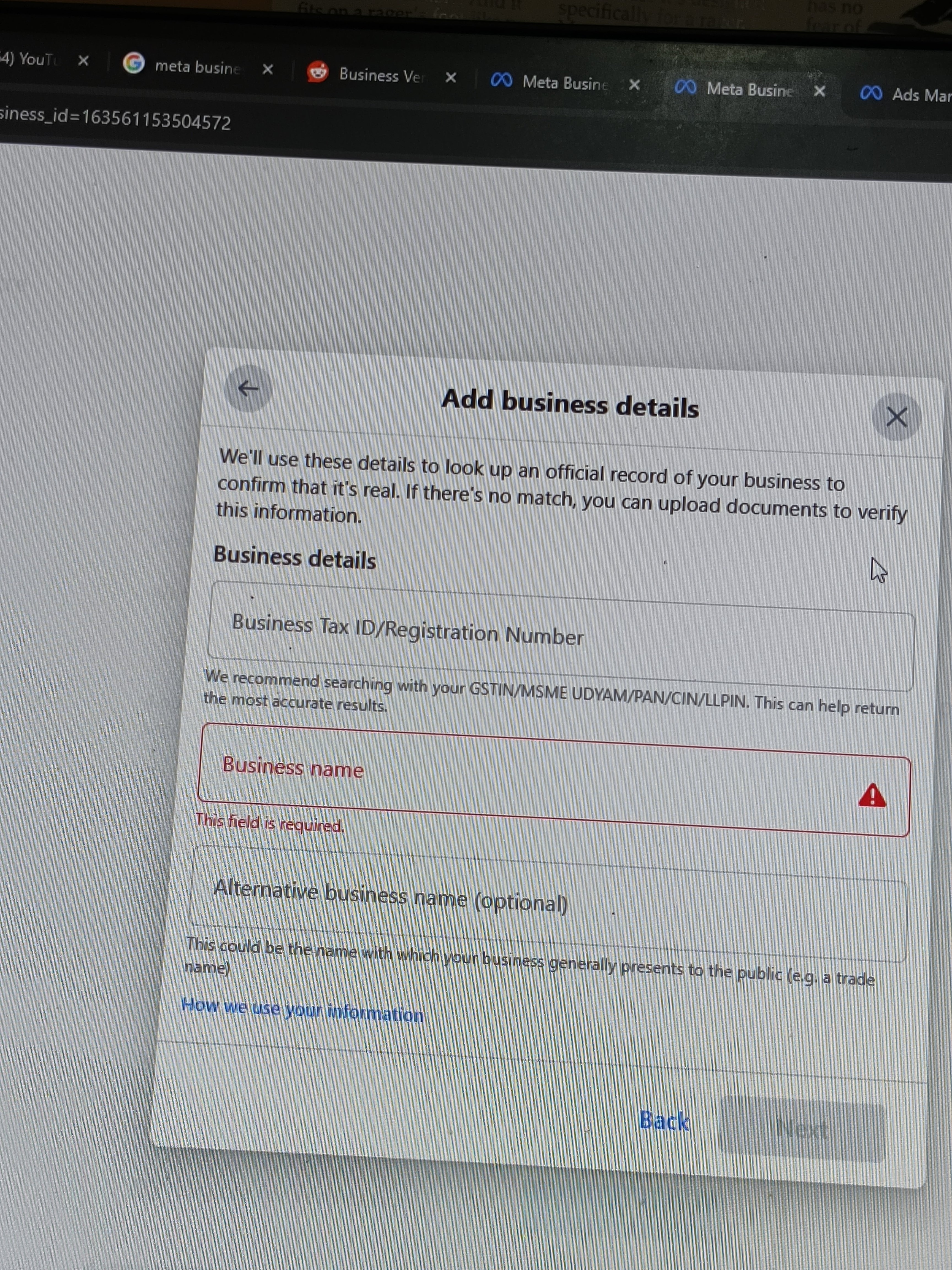 can anyone help me in this? my meta ads account got stopped due to verification i didn't have any registration certificate or anything else regarding business. As I just started dropshipping and started testing products. Even after selecting business is not registered it's asking for registration number. As this account holds a lot of data i didn't want to lose it or start new.
