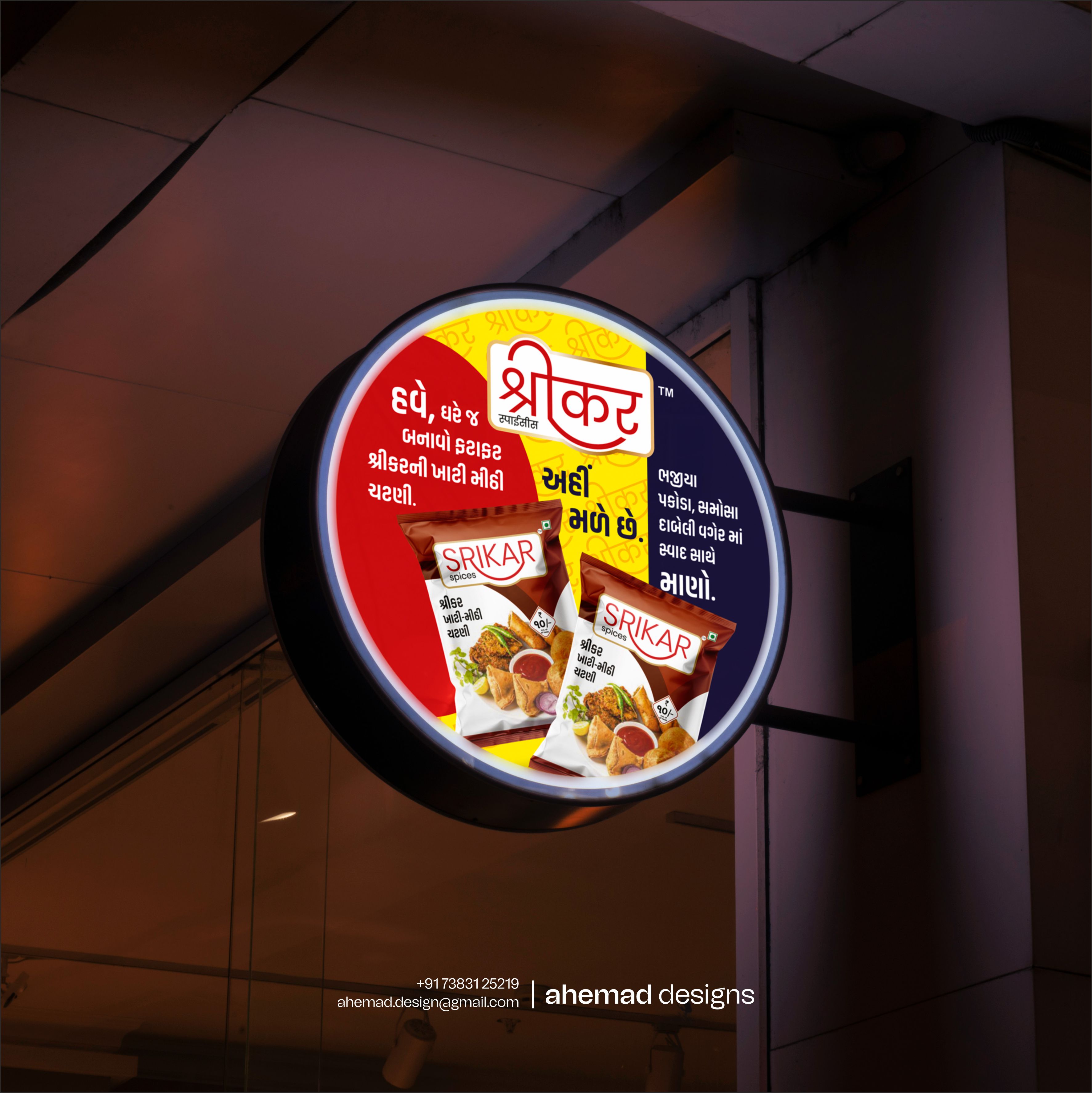 Bold, clear, and made for busy streets. This Shrikar identity grabs attention in seconds and builds trust at first glance — honest branding designed to sell, not just to look good.