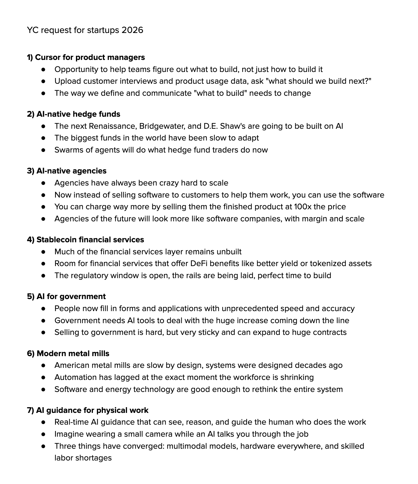 Y Combinator's 2026 request for startups: