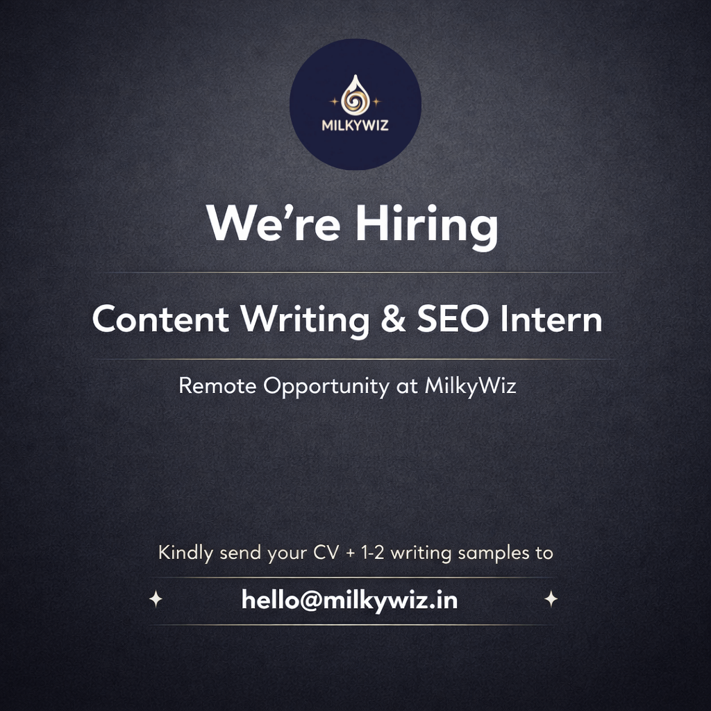 We are Hiring: Content Writing & SEO Intern (Remote) At MilkyWiz we are building a nutrition focused brand for kids and parents with a simple mission: making daily milk smarter and more nutritious. We are looking for a Content Writing & SEO Intern w