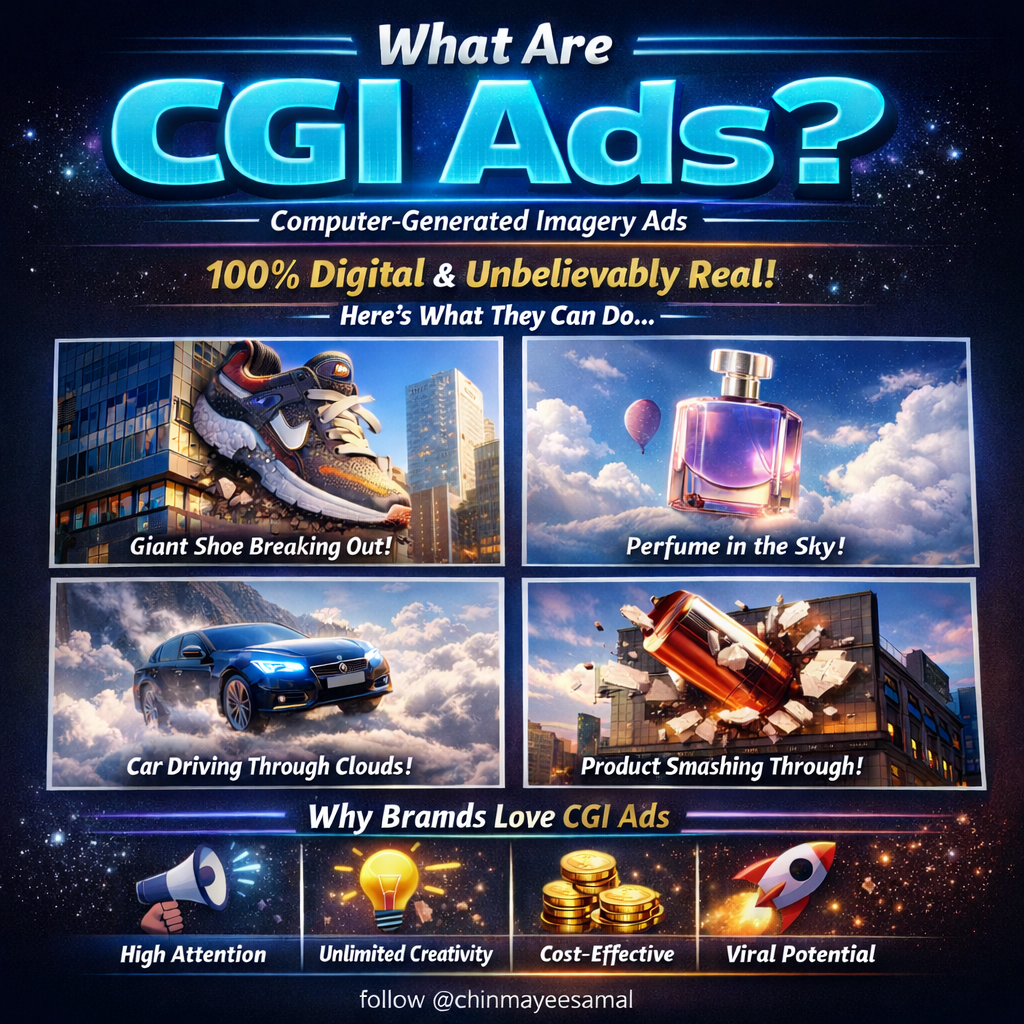 It’s not the future. It’s happening NOW. 🚀 CGI Ads are taking over timelines — bigger visuals, bolder impact, zero limits. If your brand isn’t experimenting with CGI yet, you’re already behind. Follow @chinmayeesamal for real-time marketing trend