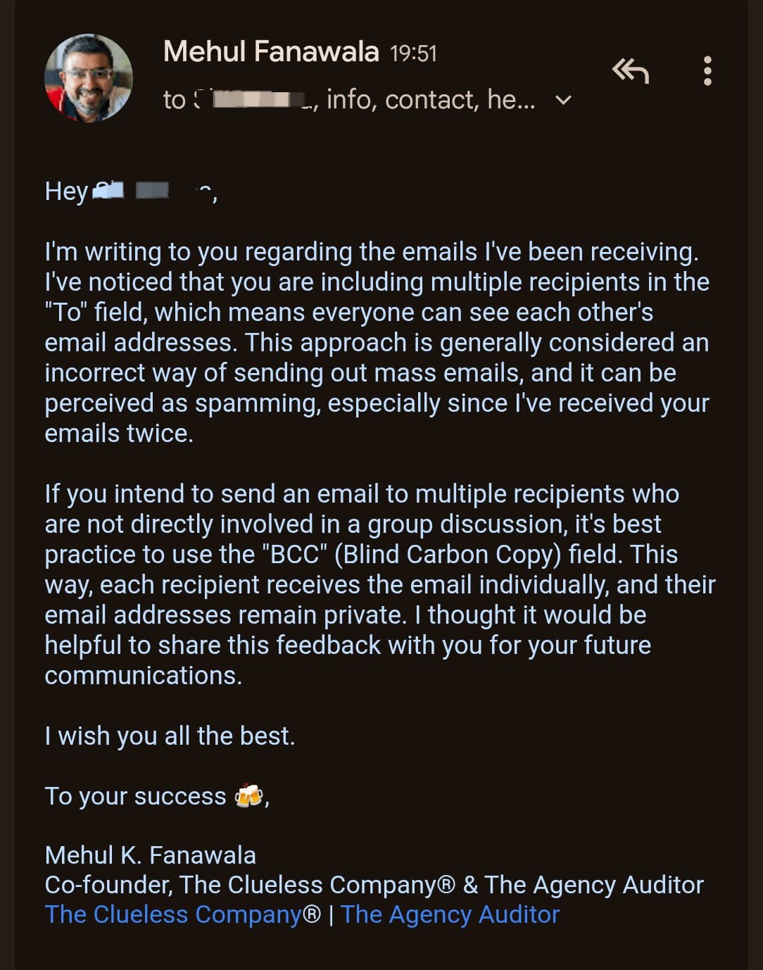 Not every email mistake is innocent, some are just careless. We’ve all seen it: An email sent to 10+ people, and everyone’s kept in the TO field. It’s one thing when a fresher or a job seeker does it, they might genuinely not know how “To,” “CC,” a