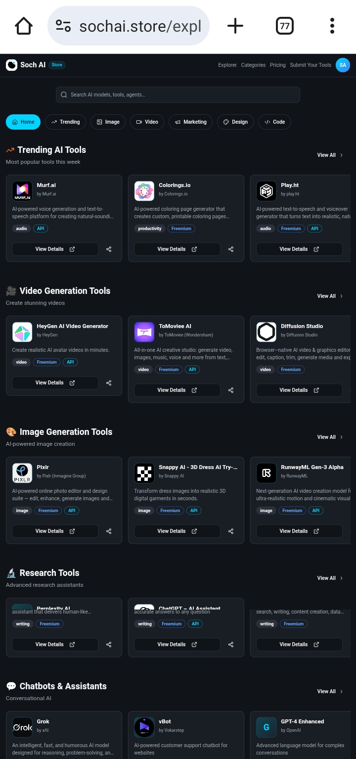 Day 11 Launching India’s AI Store Website - https://Sochai.store Today was mainly a research-focused day. We studied our competitors such as AI For That, AI directories, and similar platforms. While analysing them, we realised that most of these pl