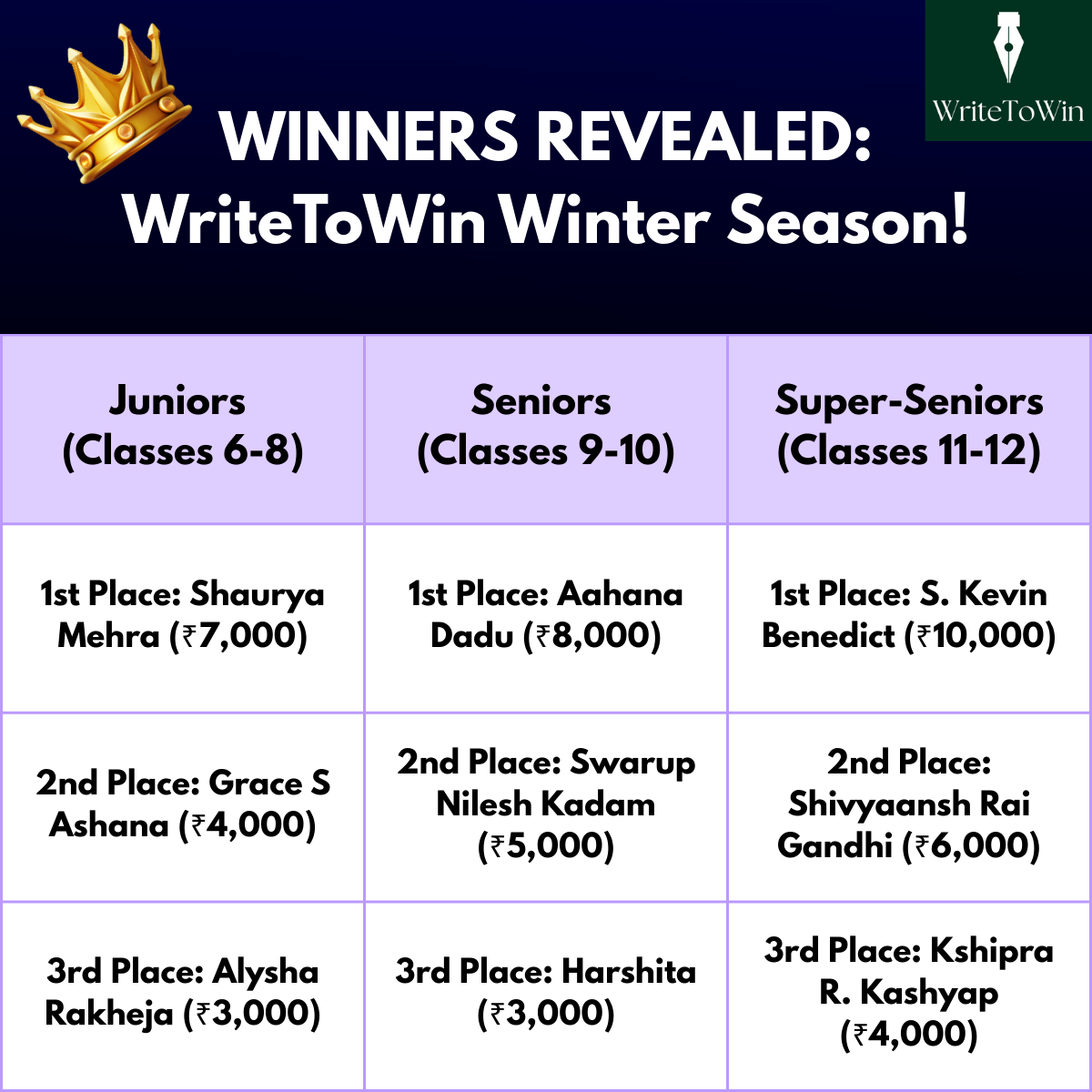 🏆 The Results Are In: Meet the Climate Voices of Tomorrow! Today is a big day at WriteToWin. After weeks of research, reflection, and "writing their hearts out," we have officially crowned the winners of our Winter Season! When I started WriteToWi
