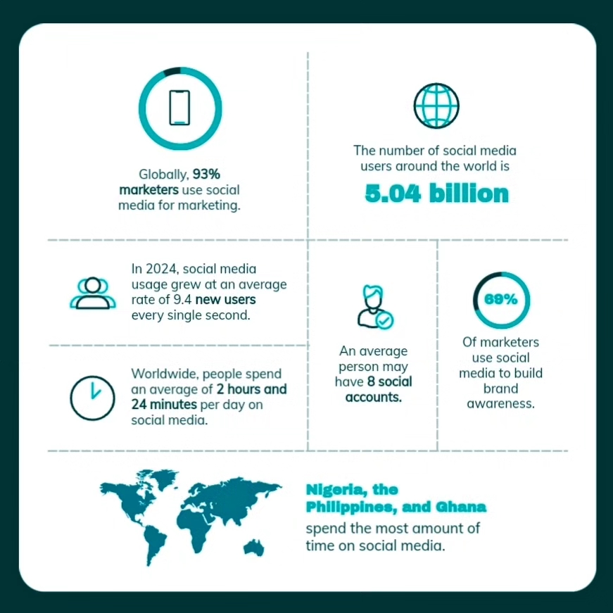 Over 5.04 billion people worldwide are now connected to the social media.#globalsocialconnectivity 🌐 #5billionstrong 💻 #digitalworld 📱