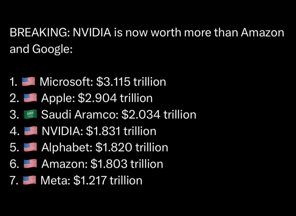 Nvidia is now a worth more than Amazon, Facebook and Google 😨😨