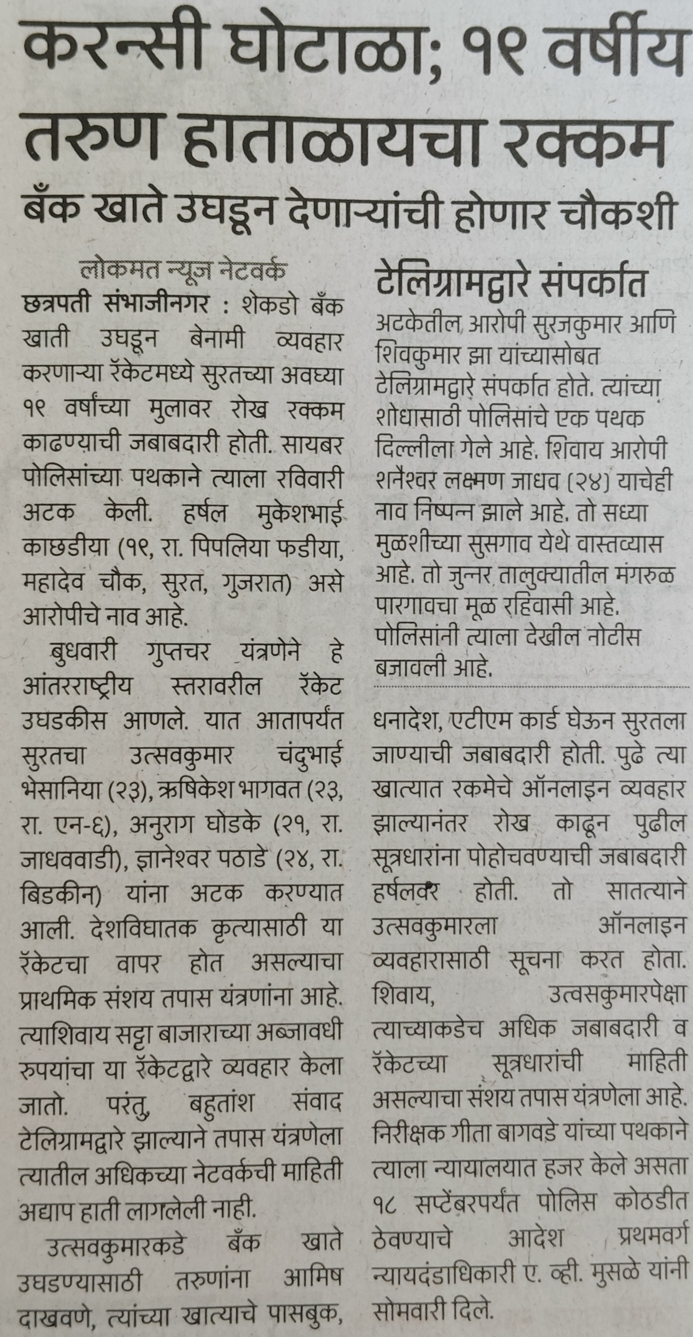 This article discusses a currency scam where a 19-year-old was involved in transferring funds using fake bank accounts. The incident occurred in Surat, Gujarat, and the accused, Harsh Mukeshbhai Kachhadiya, was responsible for handling large sums of