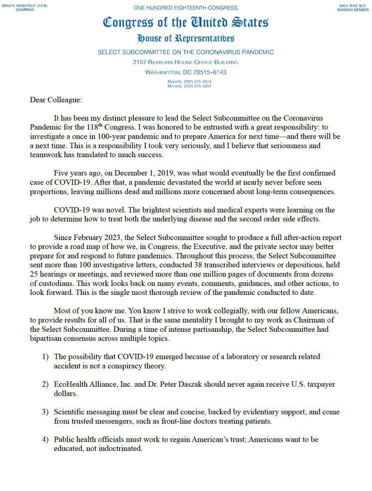 🤯 The U.S. Congress has released a 557-page report on its two-year investigation into the COVID-19 pandemic. Your perspective may never be the same 🇨🇳 1. 🧬 SARS-CoV-2 is 100% artificially created — it has characteristics that "do not occur in na