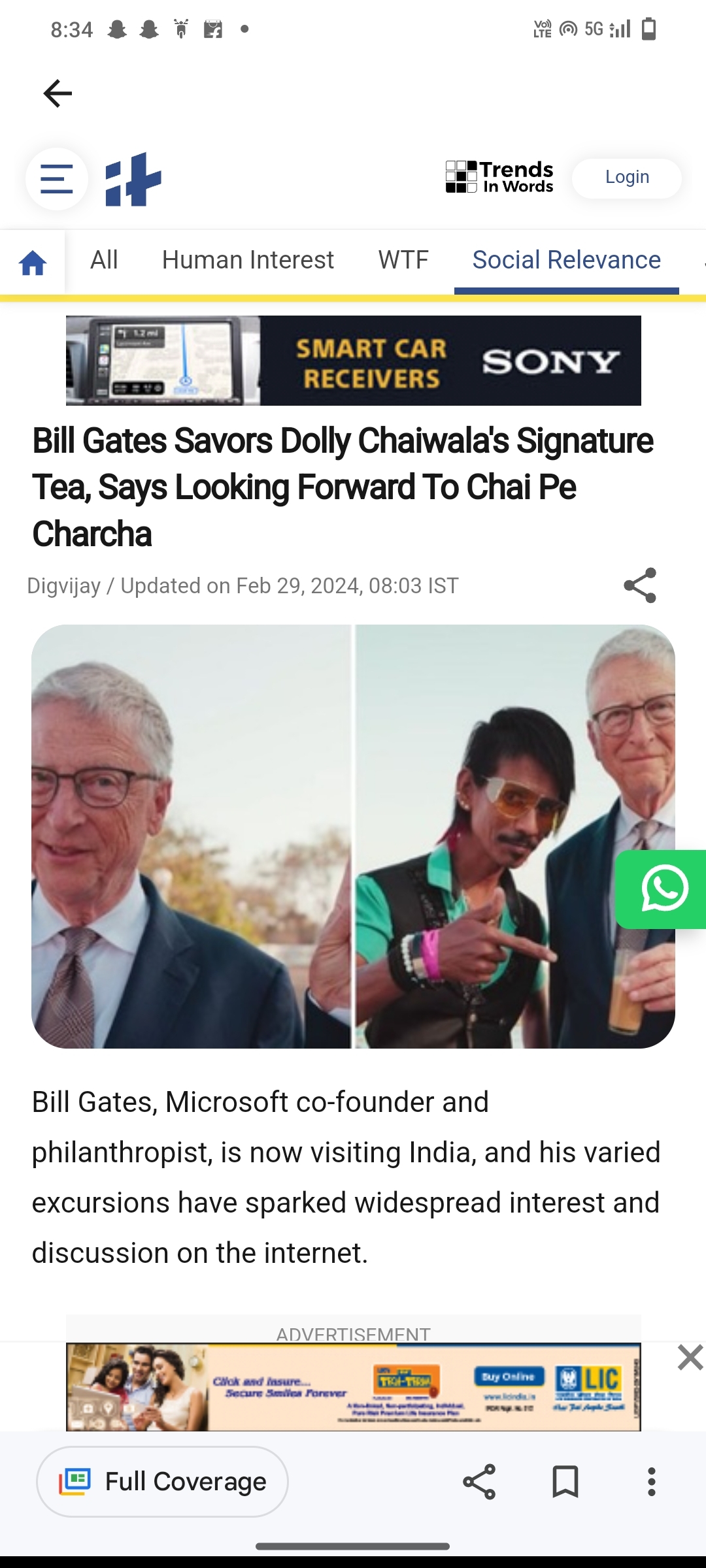 Bill gates visit to dolly chaiwalla tea stall for chai Par charcha.
