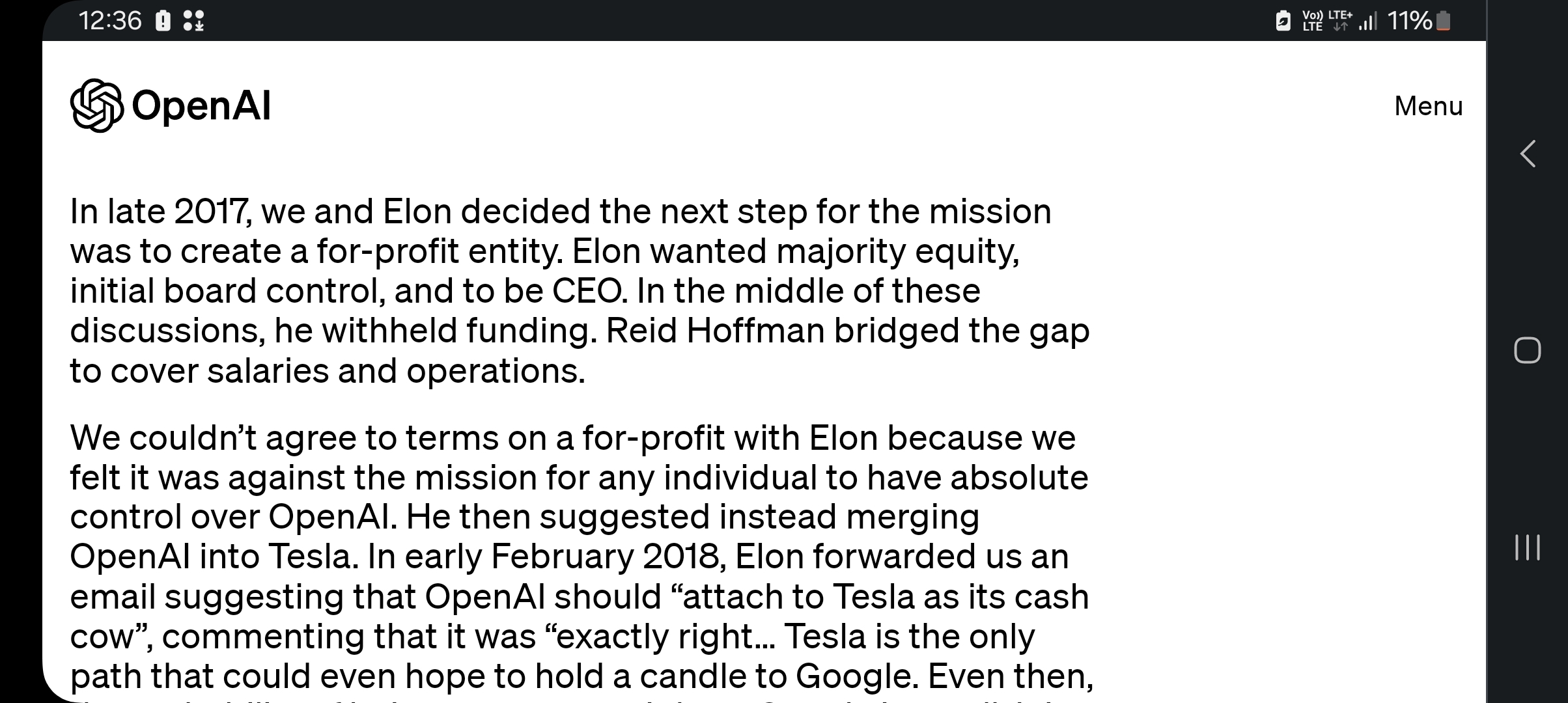 Elon was the one who wanted open ai to be a 'For profit entity'. My whole life was a joke