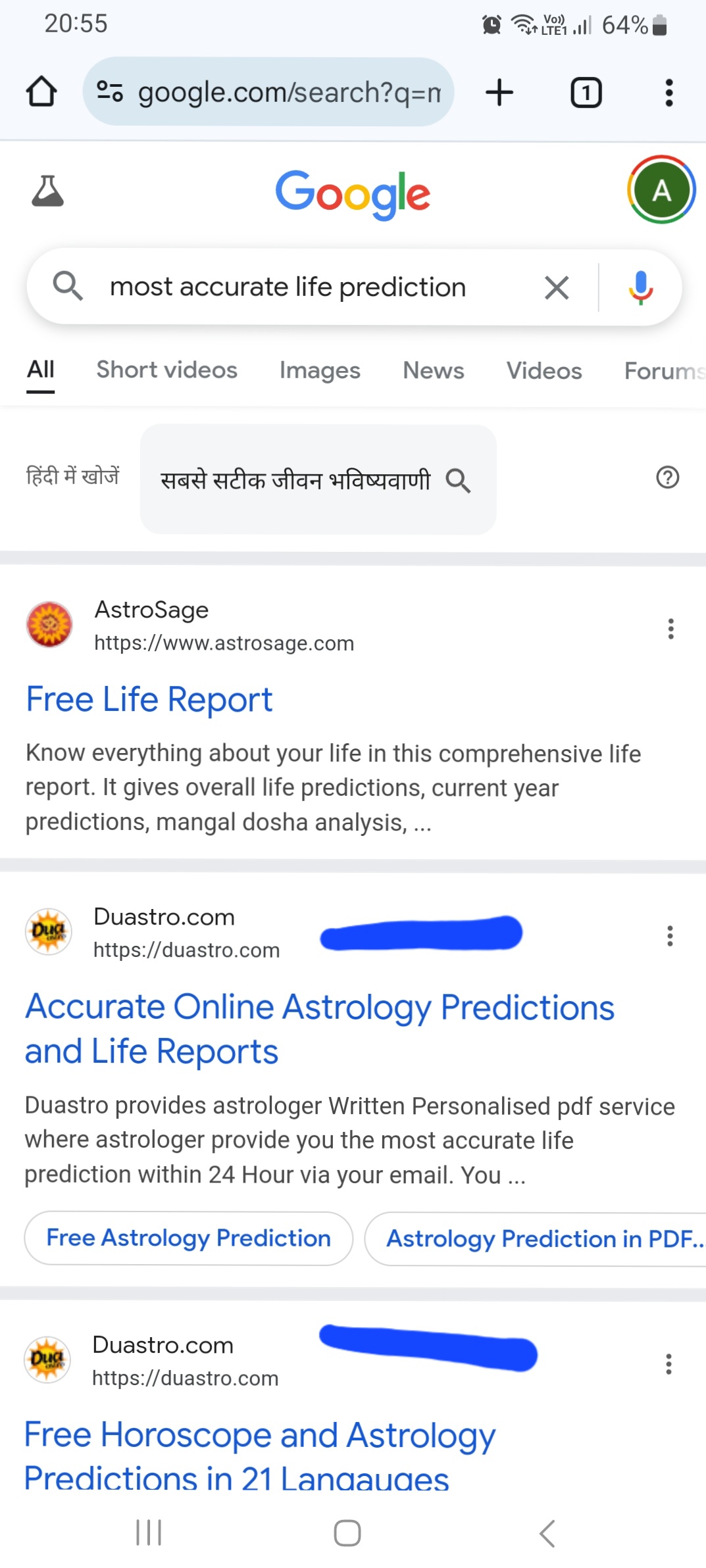Check Duastro.com 1. Own Astrology Software. 2. Own Technical Background. 3. 2024 Check Product Fit with google Ads. 4. Got 2000 Positive Reviews in last 6 months. 5. Seo started. Now in one month we are on Top in "Most Accurate Life Prediction" 6.