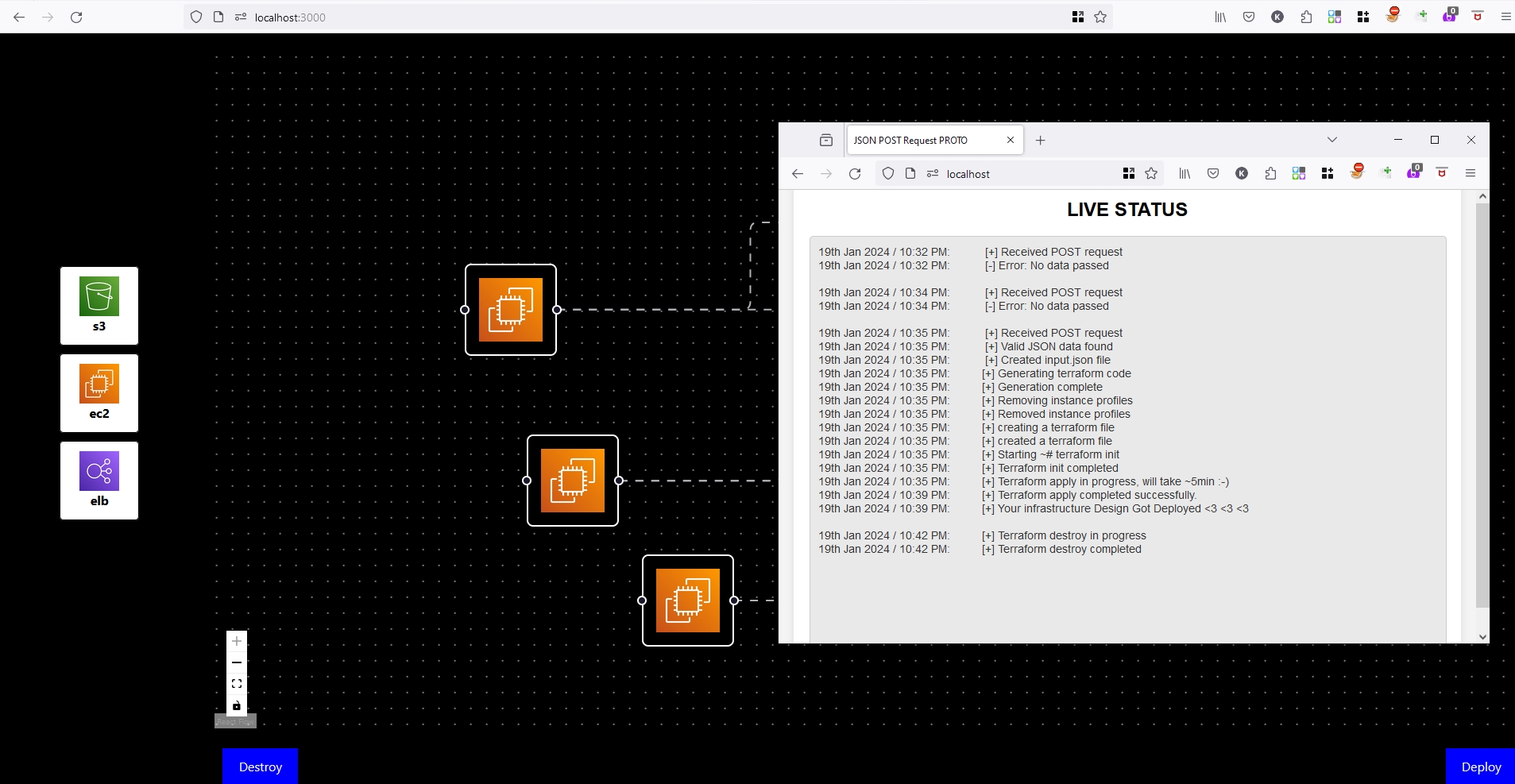 Hi @everyone My product is a virtual playground where you can architect cloud infra effortlessly. It's like having a plug-and-play interface, once your design is ready, a single click deploys it instantly. Additionally, there's a dashboard equipped with Al capabilities. This Al assistant allows you to define policies, security groups, and other technical rules effortlessly. These configurations can be seamlessly integrated into your cloud architecture while designing, ensuring compliance and security while you design. let me know if anyone is interested in this idea so we can work together. Extend the capabilities of the product and get possible investmentโจ Below image (prototype) : I have designed basic cloud architecture by dragging the elements to the playground and connecting them. Once clicked on deploy button, all the specified services, security groups, roles ..etc were deployed/created in my AWS account. Design -> IAC -> Deploy insta and LinkedIn are in my medial profile.