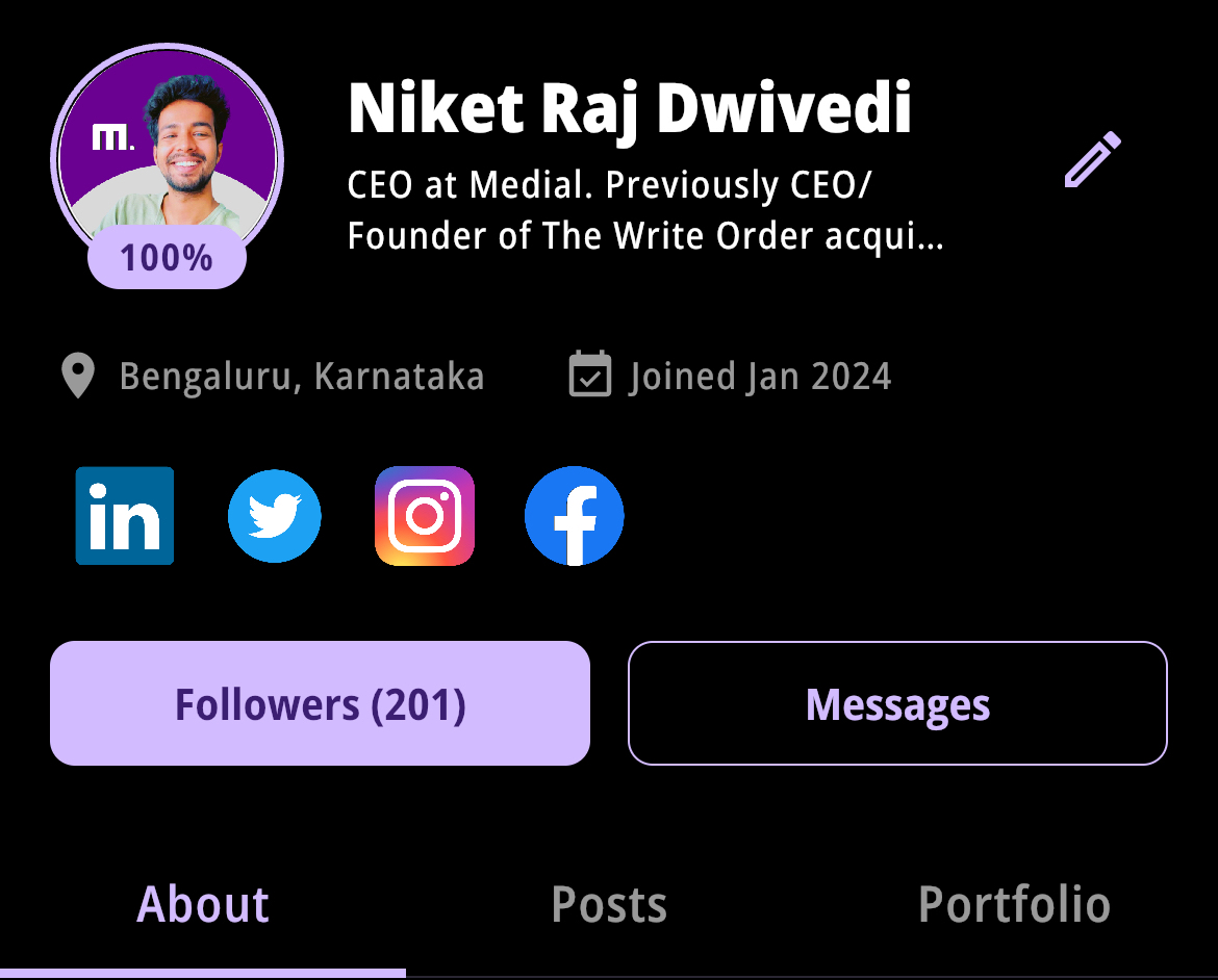 I crossed 100 followers on Medial today! Thanks for showering you love on Medial. I’m proud of how our community is shaping up and would like to thank each one of you ❤️🚀 The first person to reach 100 followers (who isn’t a Medial team member) will