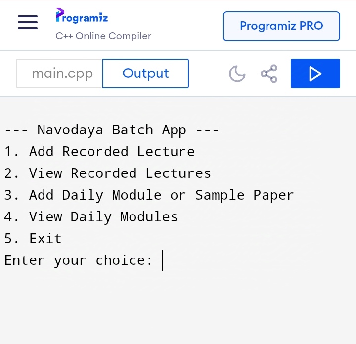 Creating a full-fledged app for live classes, recorded lectures, and daily module sample papers requires integration with multiple technologies (e.g., video streaming, file storage, backend servers). Applied Knowledge : C++ console application framew