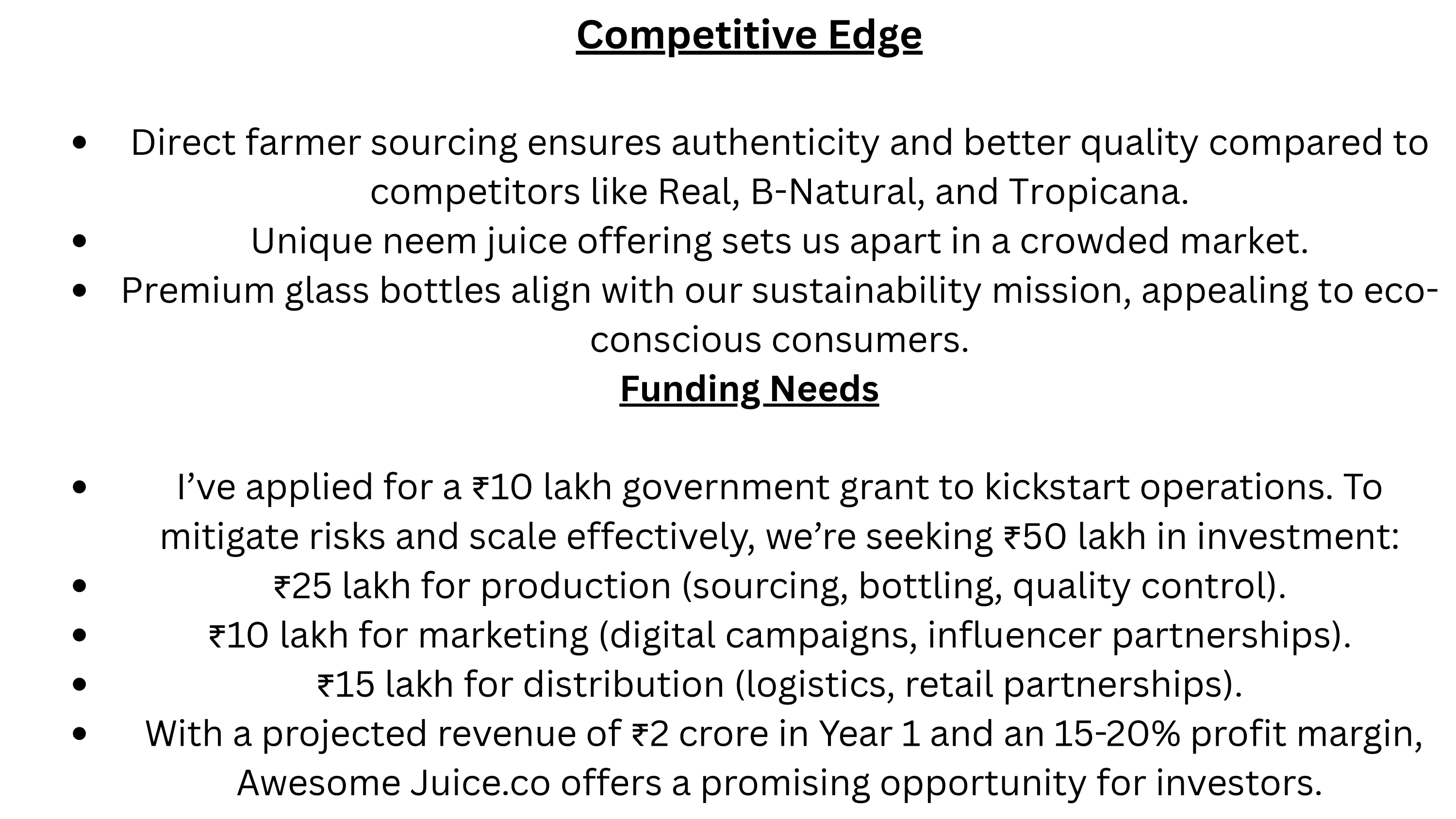 Hi Everyone, I'm Working on Refining Juice Industry In India I Need Some Help In Funding .I Am Attaching My Company Details .Any Thought Or Suggestion Please Drop In Comments . If Any Investor In Your Connection Please Give Reference Your Support Are