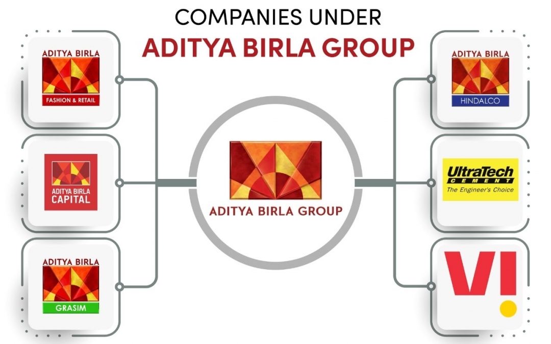 Aditya Birla Group Surpasses $100 Billion Mark Portfolio: 1.UltraTech Cement 2.Grasim 3.Hindalco 4.Aditya Birla Capital 5.Aditya Birla Sun Life AMC 6.Vodafone Idea 7.Aditya Birla Fashion and Retail 8.TCNS Clothing 9.Aditya Birla Money 10.Century Te