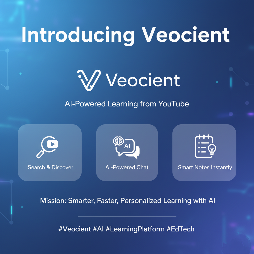 We’re building Veocient – an AI-powered learning platform that transforms how we learn from YouTube. With Veocient, learners can: 🔍 Search and discover the best videos for their needs 💬 Interact with the video through AI-powered chat 📝 Generate o
