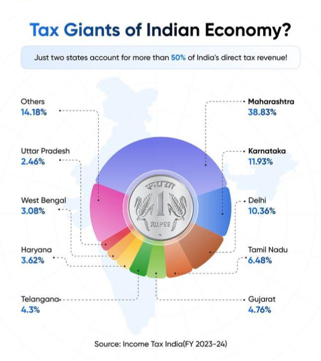 Over half of India’s direct tax revenue — from individuals, corporates, and businesses and more— comes from just two states. This revenue is the backbone funding our infrastructure, healthcare, and education. Comment below and tell us: which state do