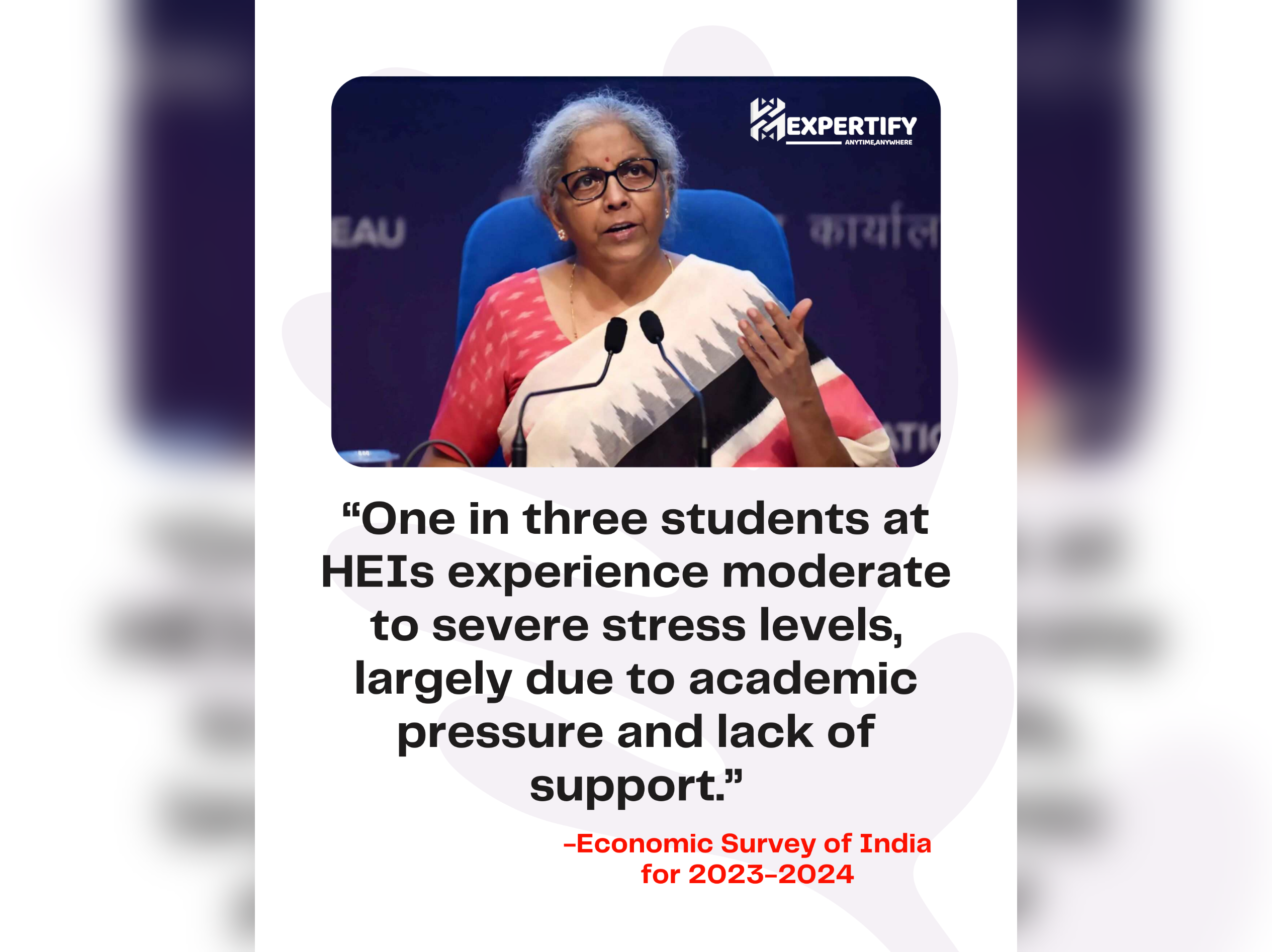 Do you Know that One in Three students from Higher Educational Institutes experience moderate to severe Stress levels ? The Union Finance Minister, Ms Nirmala Sitharaman, highlighted mental health in the Economic Survey of India for 2023-2024. The s