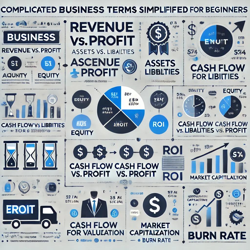 Complicated Business Terms Simplified PART 2 1️⃣ Equity: 📌 The owner’s share in a company after subtracting liabilities from assets. 2️⃣ Cash Flow: 📌 The actual movement of money in and out of a business, crucial for daily operations. 3️⃣ Reven