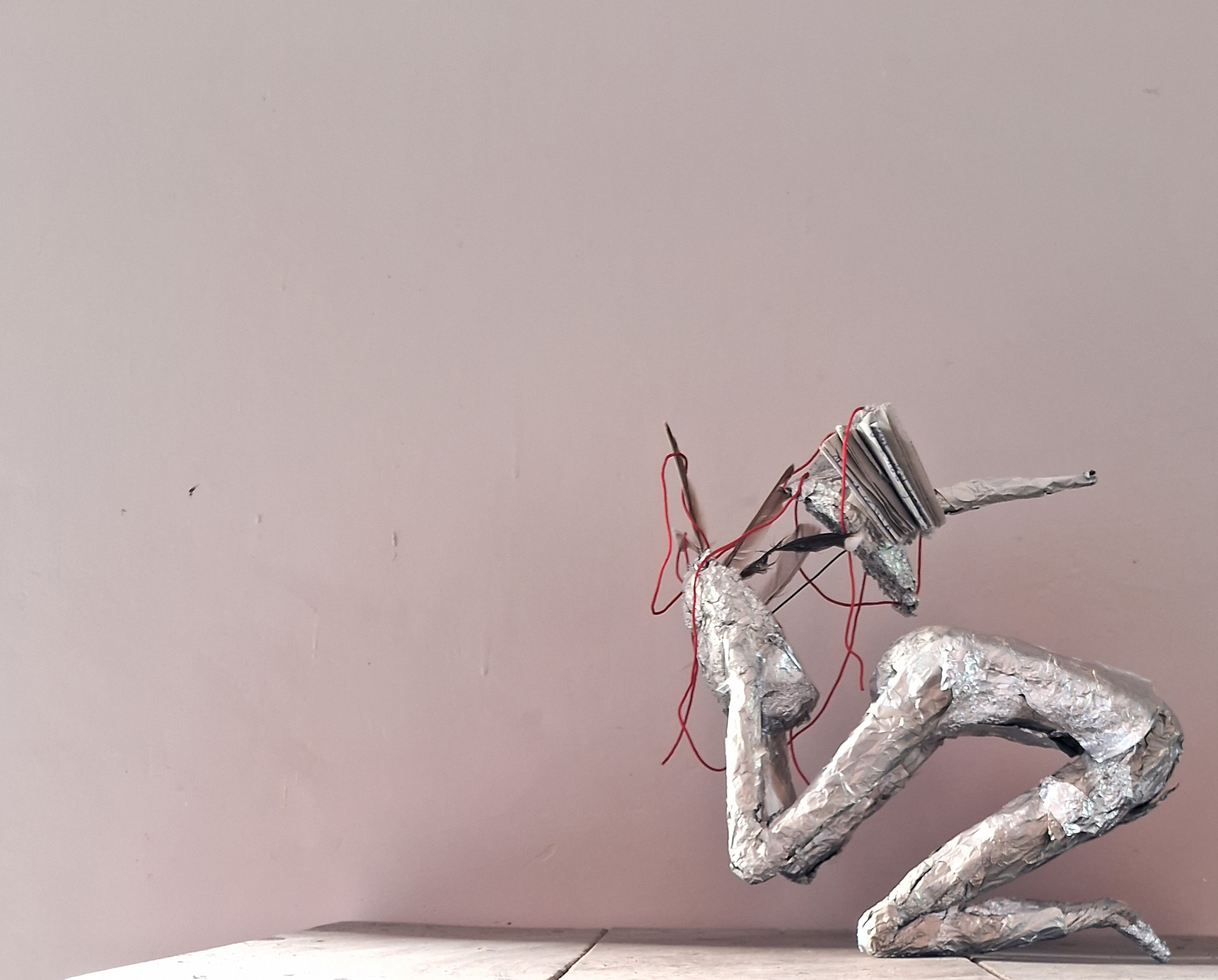 The body shows the child. The feather shows the creativity of the child. The book shows the rule and regulations of society and family. The arrow shows the society and family.