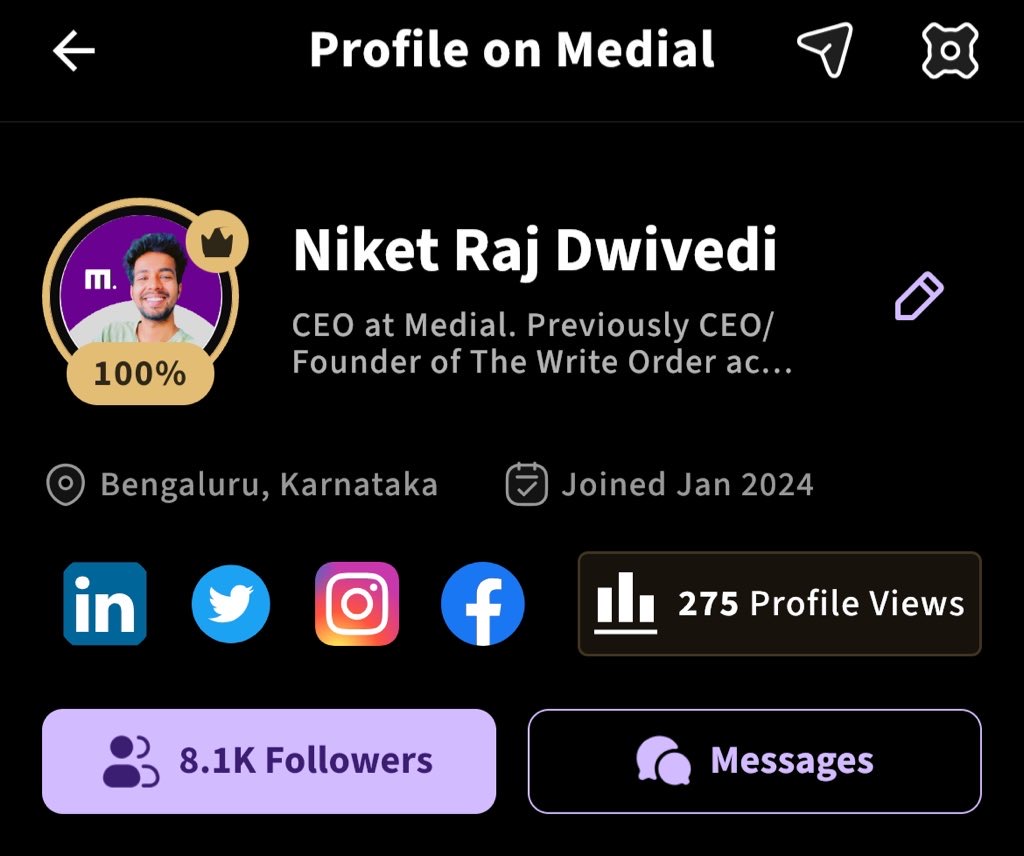 I have more followers on Medial now than Linkedin or any of my other social profiles! Within 8 months we have climbed to almost 200,000 users and growing rapidly. Also one of the first social networks in the country to monetise this early but more