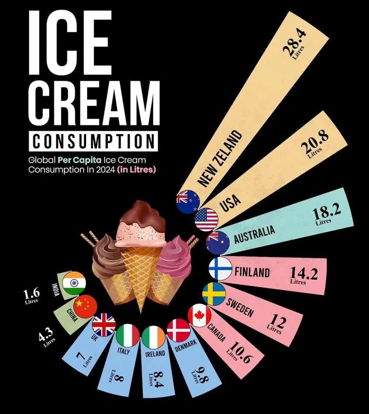 Indians consume only 1.6 litres of ice cream per capita versus an astounding 28.4 litres in New Zealand 🤯 The Indian ice cream and frozen dessert market is on a high-growth trajectory. At around $3.4 billion in FY2023, it is expanding at an estimat