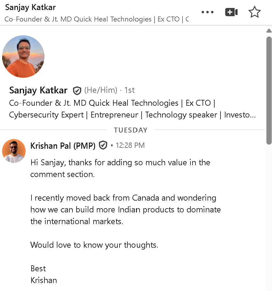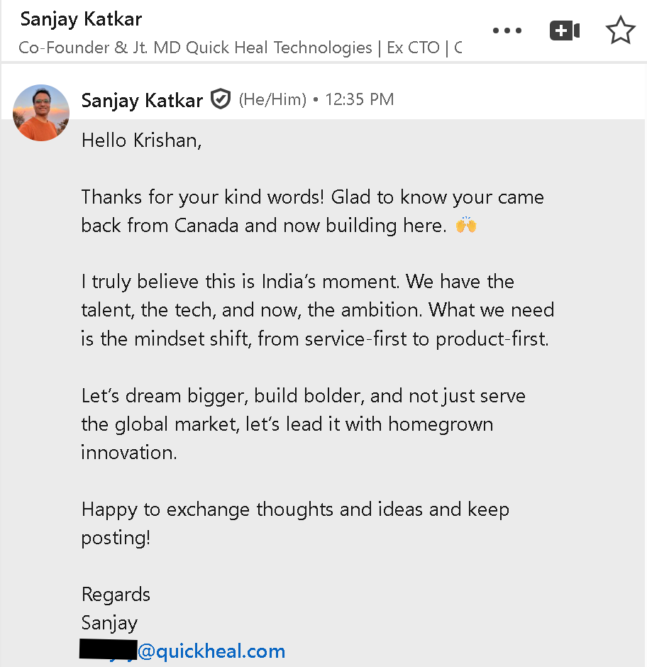 A few days ago, I had the privilege of connecting with Sanjay Katkar the co-founder of Quick Heal one of India’s original cyber security pioneers. We spoke about something close to my heart: How India can shift from being a service economy to b