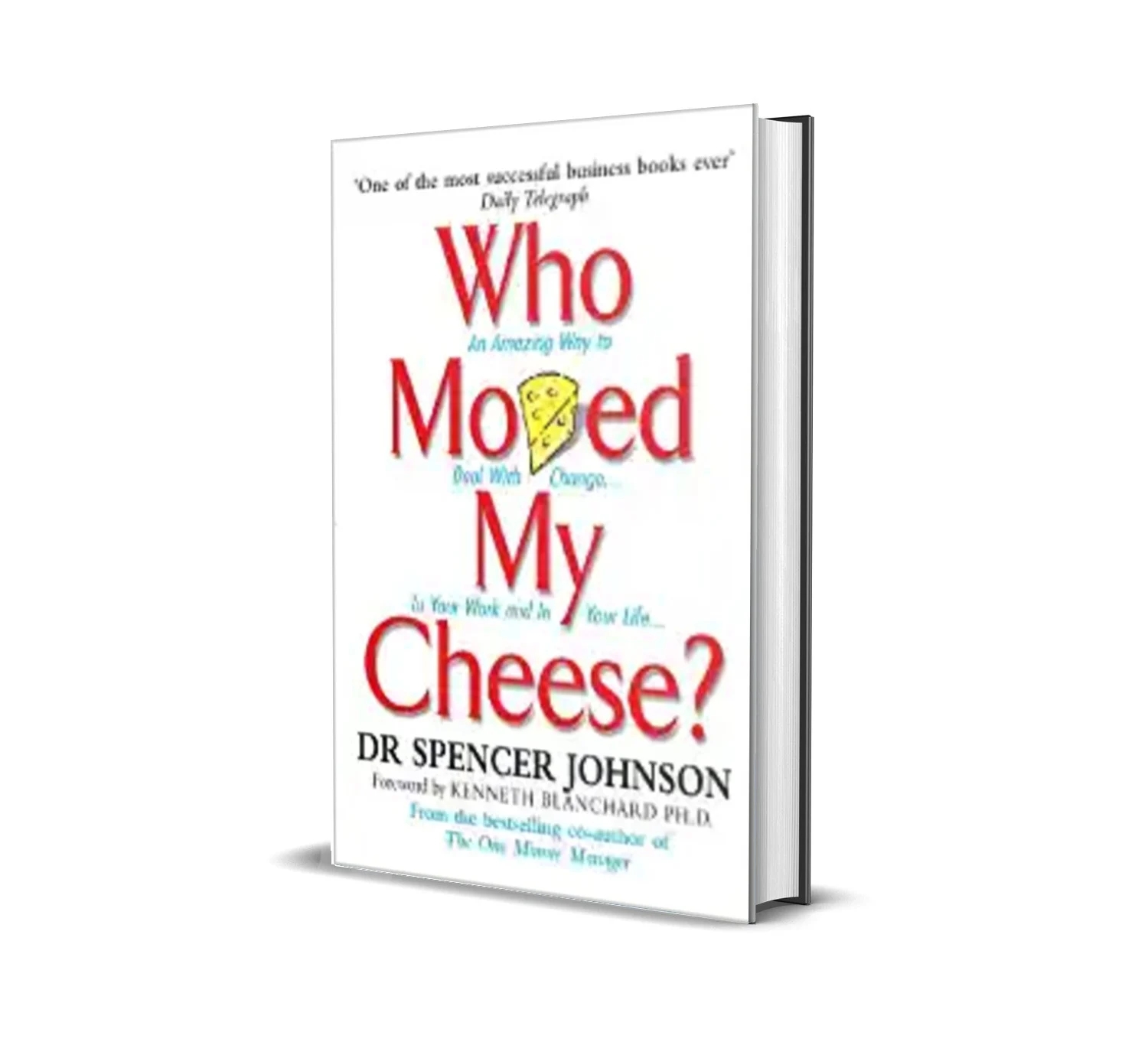 #Book1. Who moved my Cheese? Who Moved My Cheese?" is a motivational business book by Dr. Spencer Johnson. It uses a simple parable about two mice and two little people to illustrate how people deal with change in their lives and work. The core of the story is about mice and little people who are put in a maze to find cheese, which represents happiness and success. Initially, they easily find the cheese and continue returning to the same place. However, one day the cheese supply runs out, and the characters have to deal with this change in their situation. While the mice quickly adapt to find new cheese, the little people struggle with denial, anger, and fear before eventually realizing they have to move on and find new cheese. The key message is that we must anticipate change, adapt quickly, and enjoy the adventure and opportunity of seeking new situations of success when the inevitable changes occur.